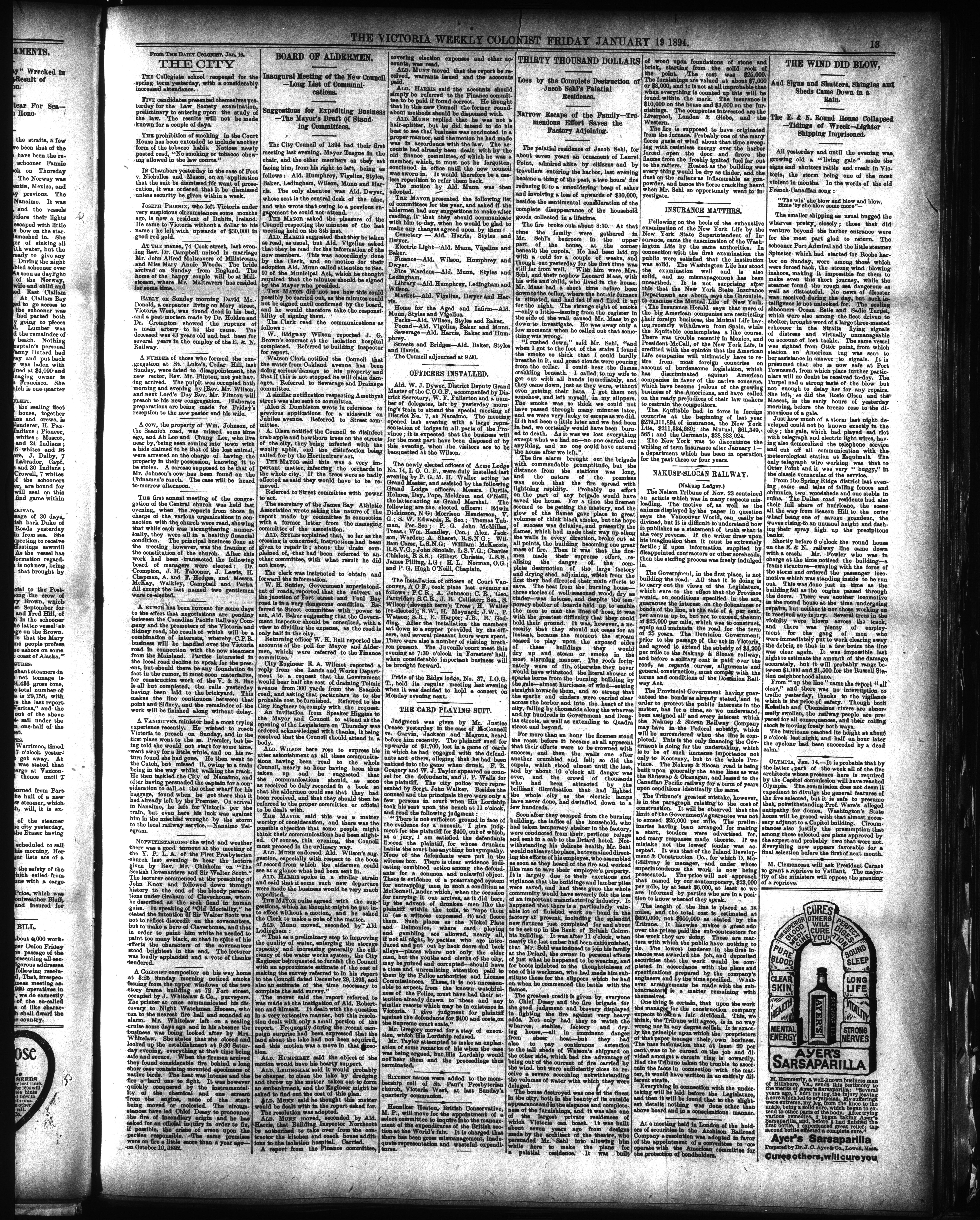 The Weekly colonist. : Volume XXXVI, No. 5 (January 19, 1894)
