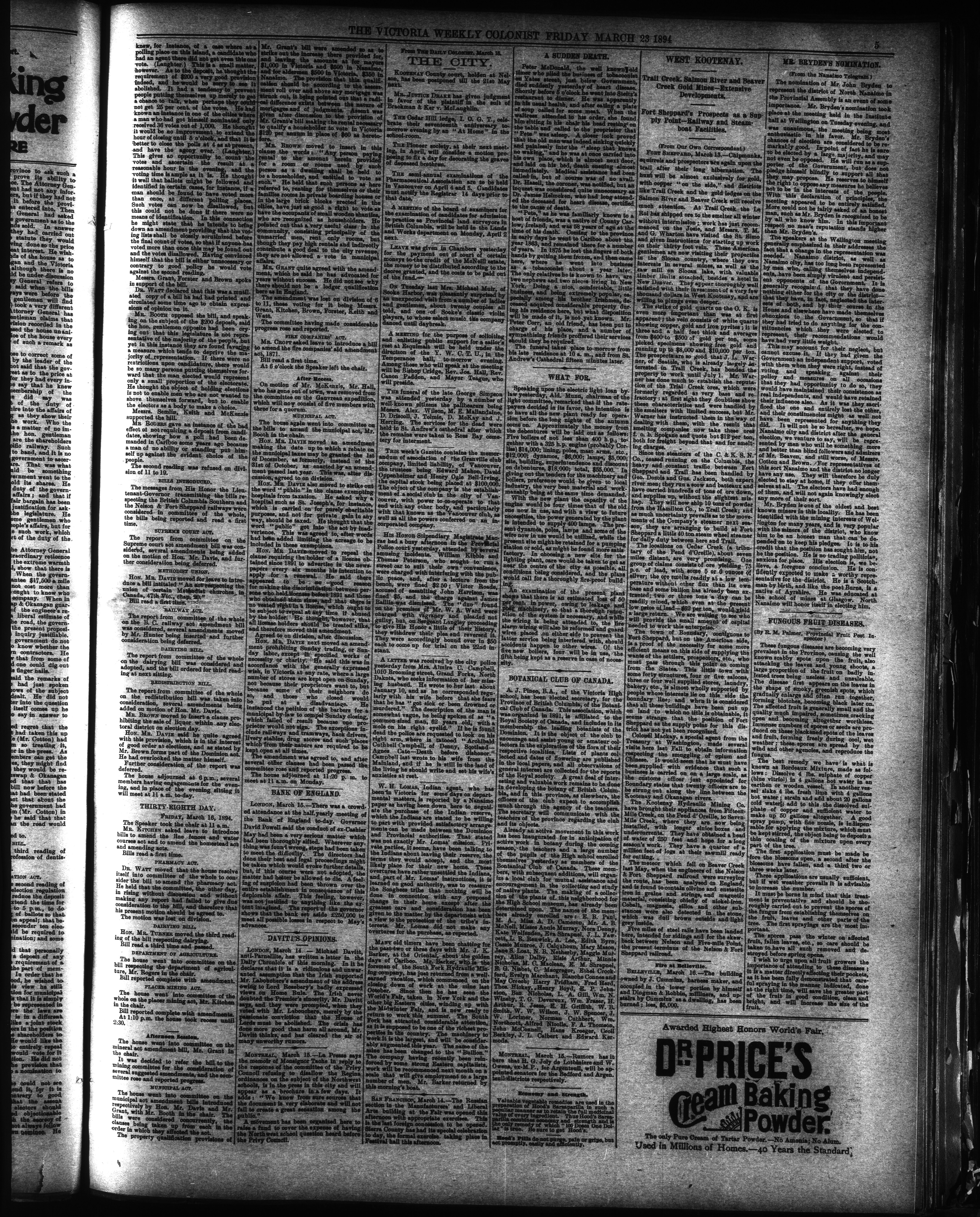 The Weekly colonist. : Volume XXXVI, No. 14 (March 23, 1894)