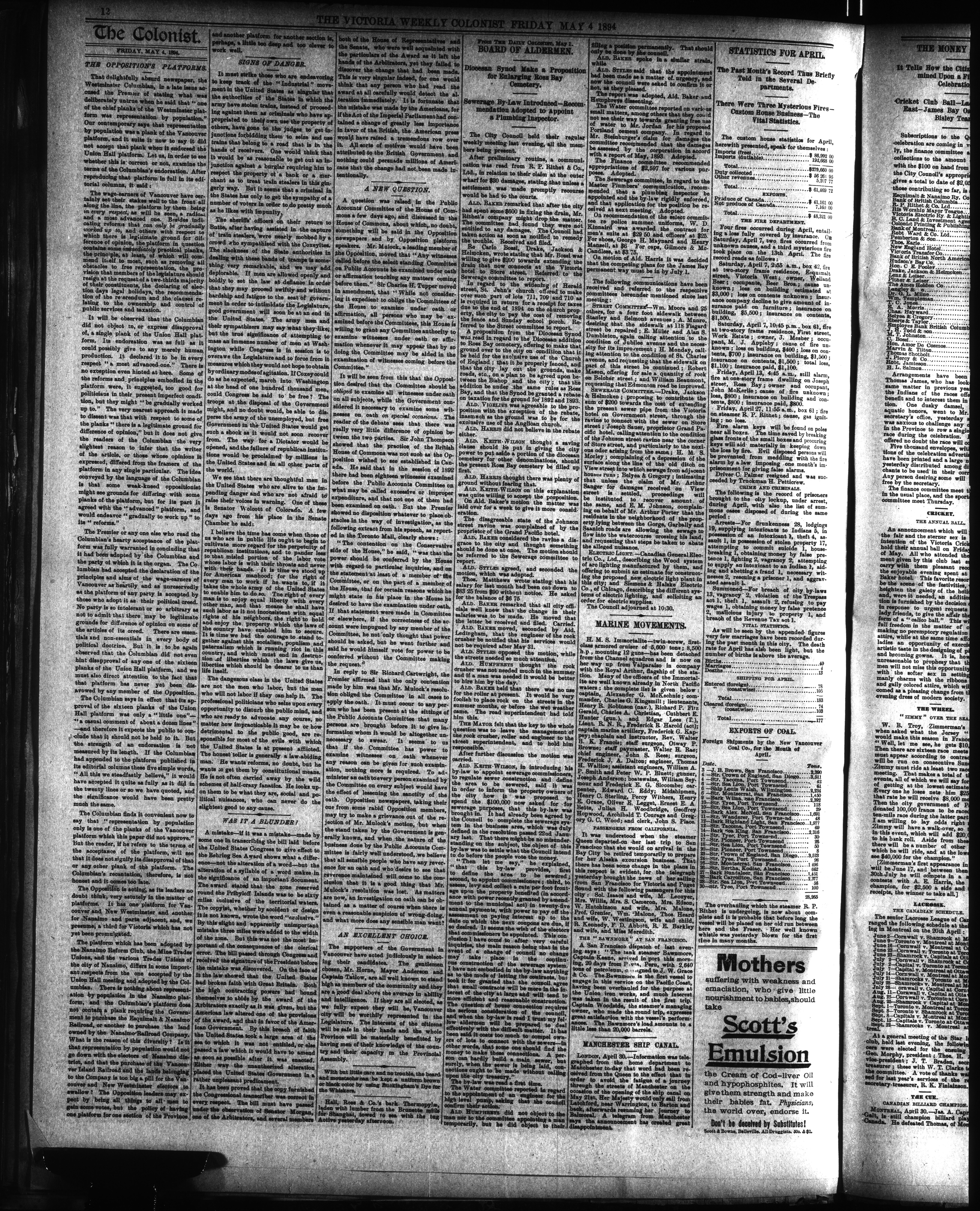 The Weekly colonist. : Volume XXXVI, No. 20 (May 4, 1894)