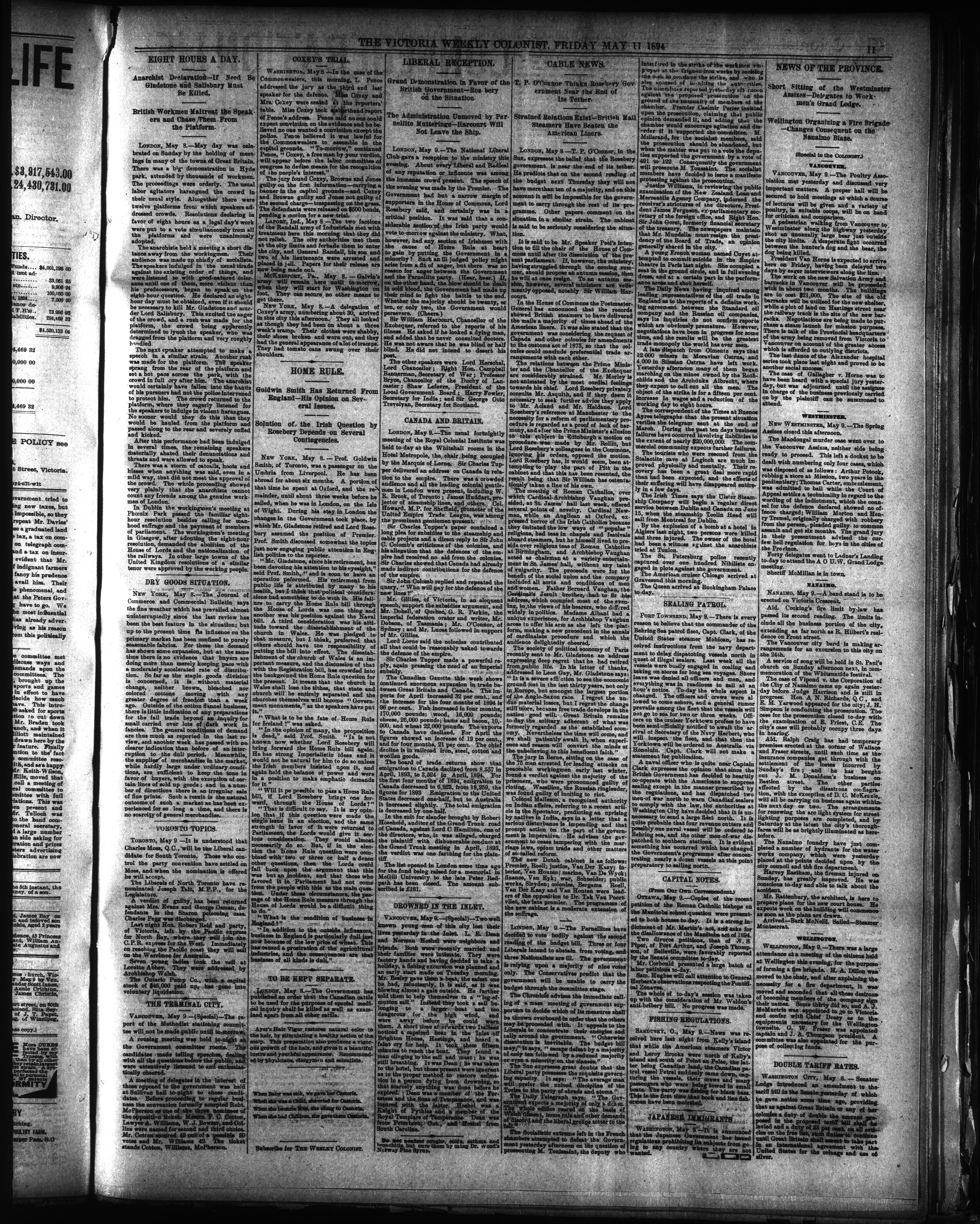 The Weekly colonist. : Volume XXXVI, No. 21 (May 11, 1894)