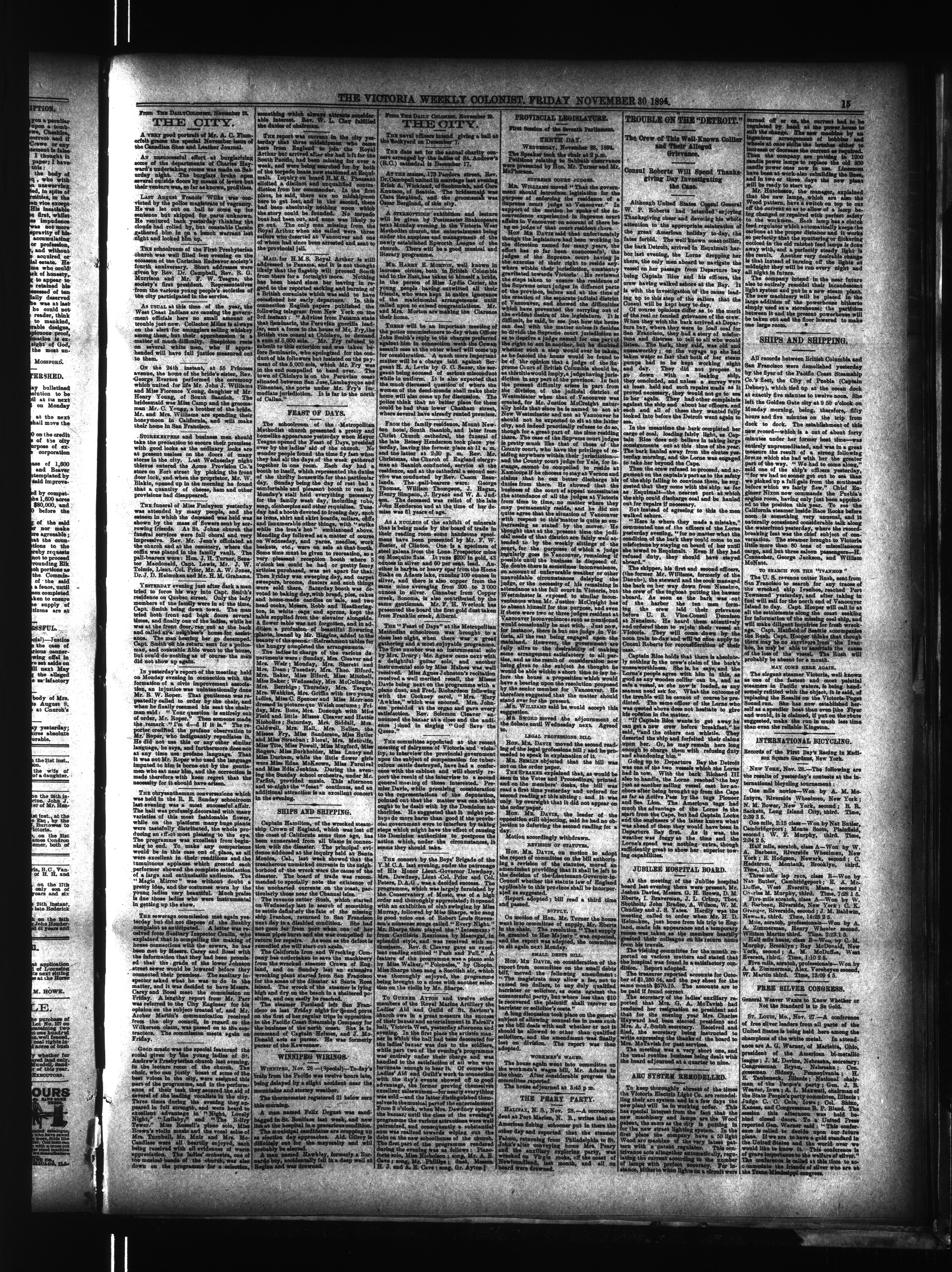 The Weekly colonist. : Volume XXXVI, No. 51 (November 30, 1894)