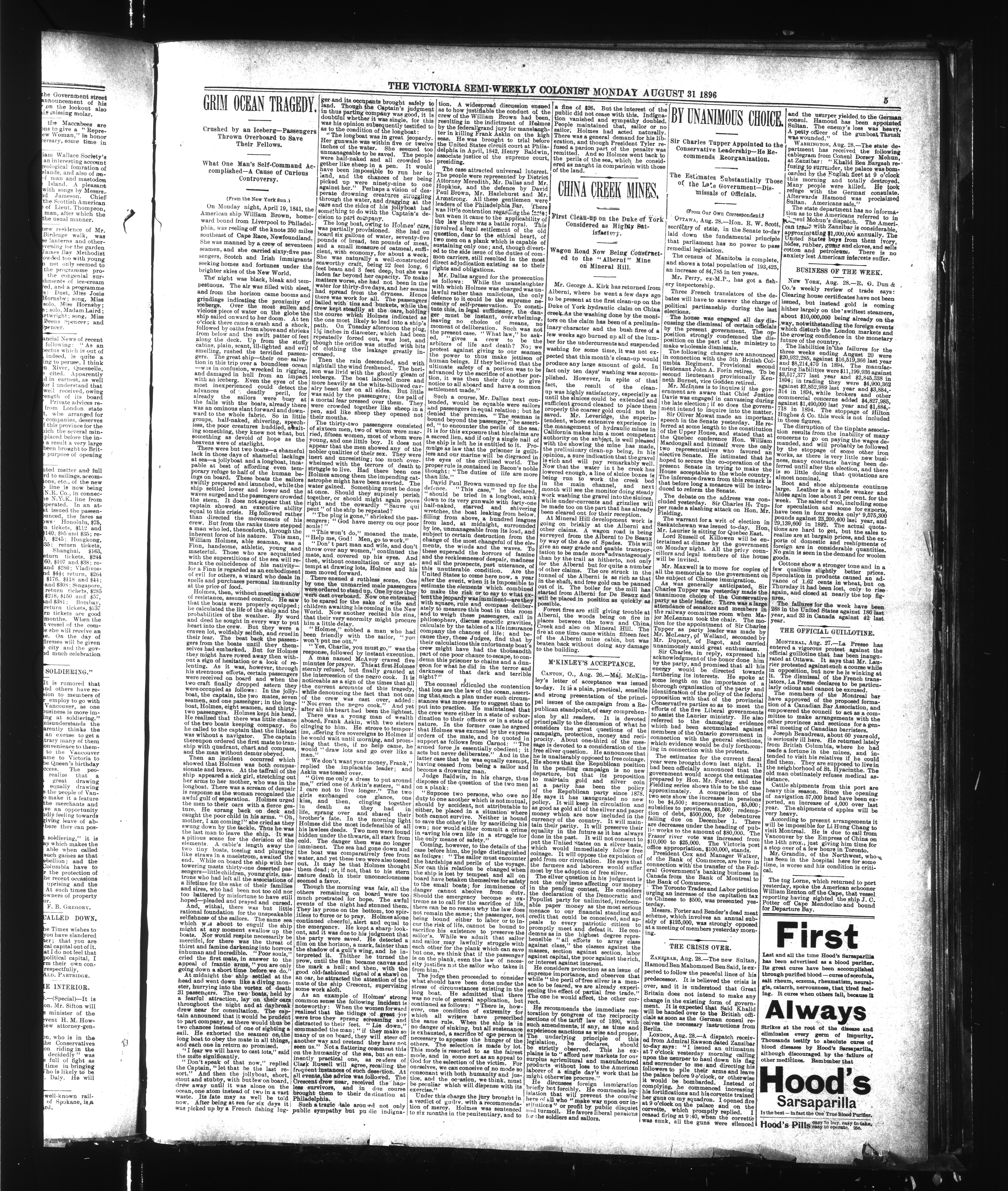 The Semi-Weekly Colonist. : Volume XXXVIII, No. 80 (August 31, 1896)