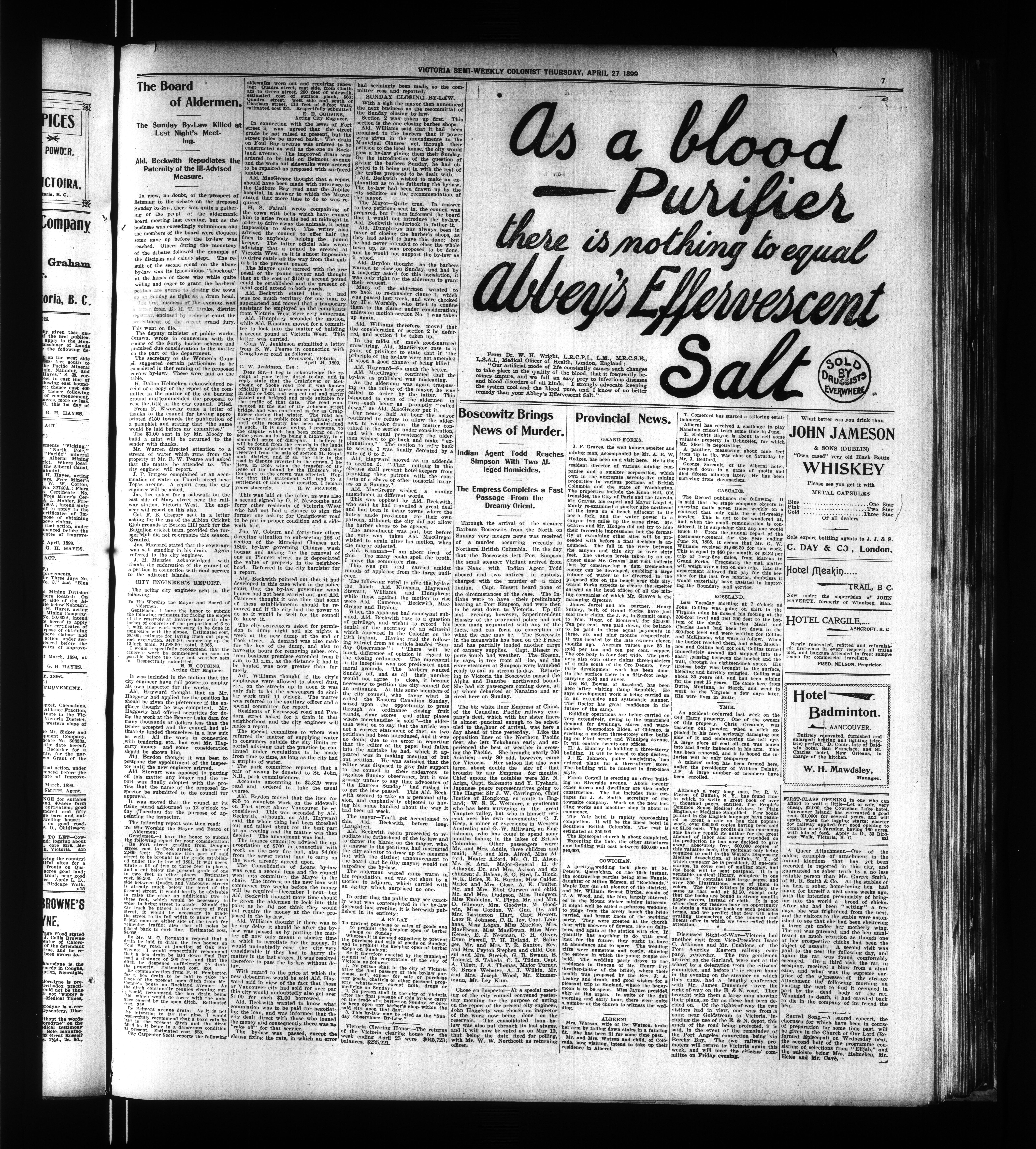 The Semi-Weekly Colonist. : Volume XLIII, No. 50 (April 27, 1899)