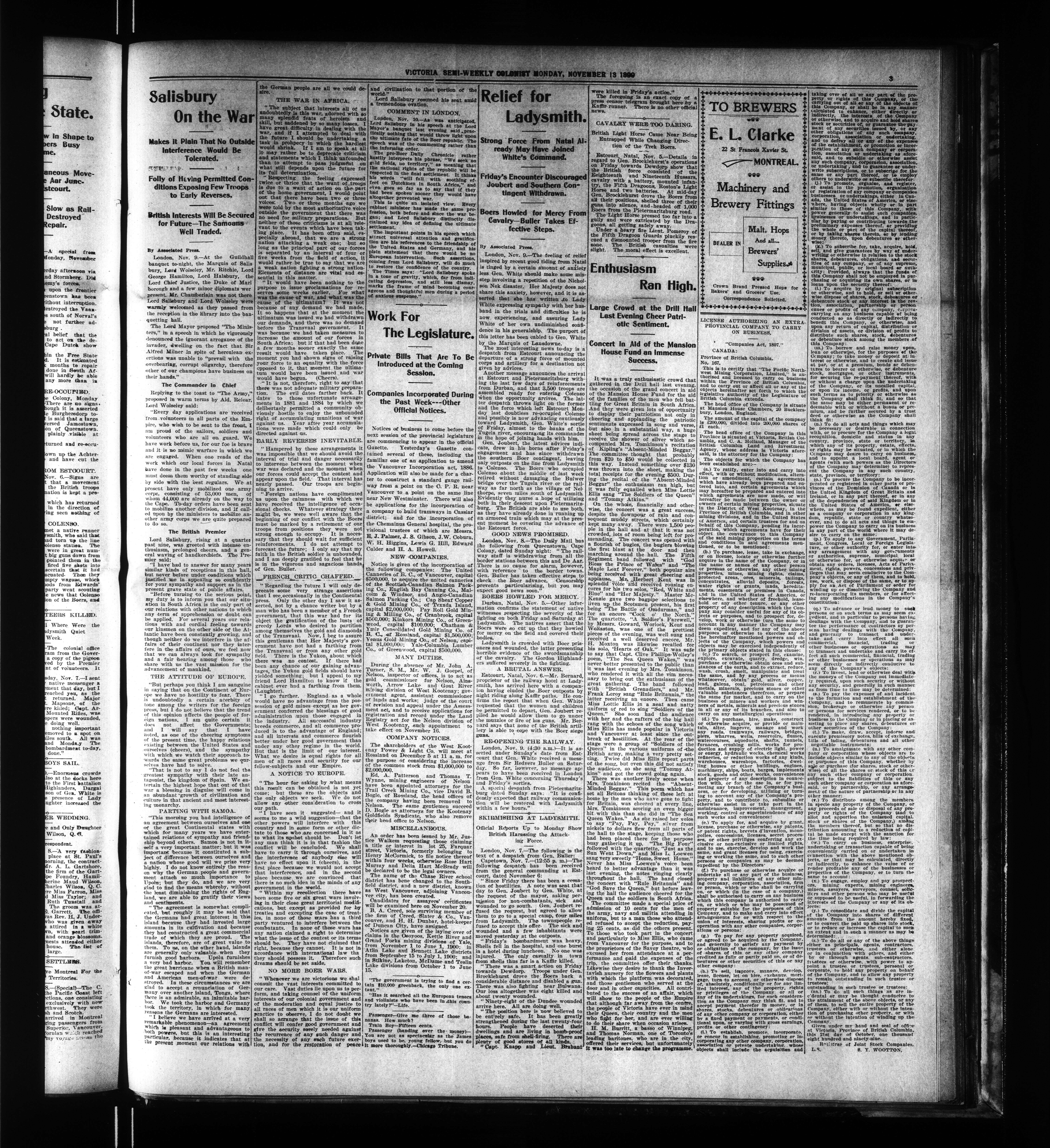 The Semi-Weekly Colonist. : Volume XLIII, No. 94 (November 13, 1899)