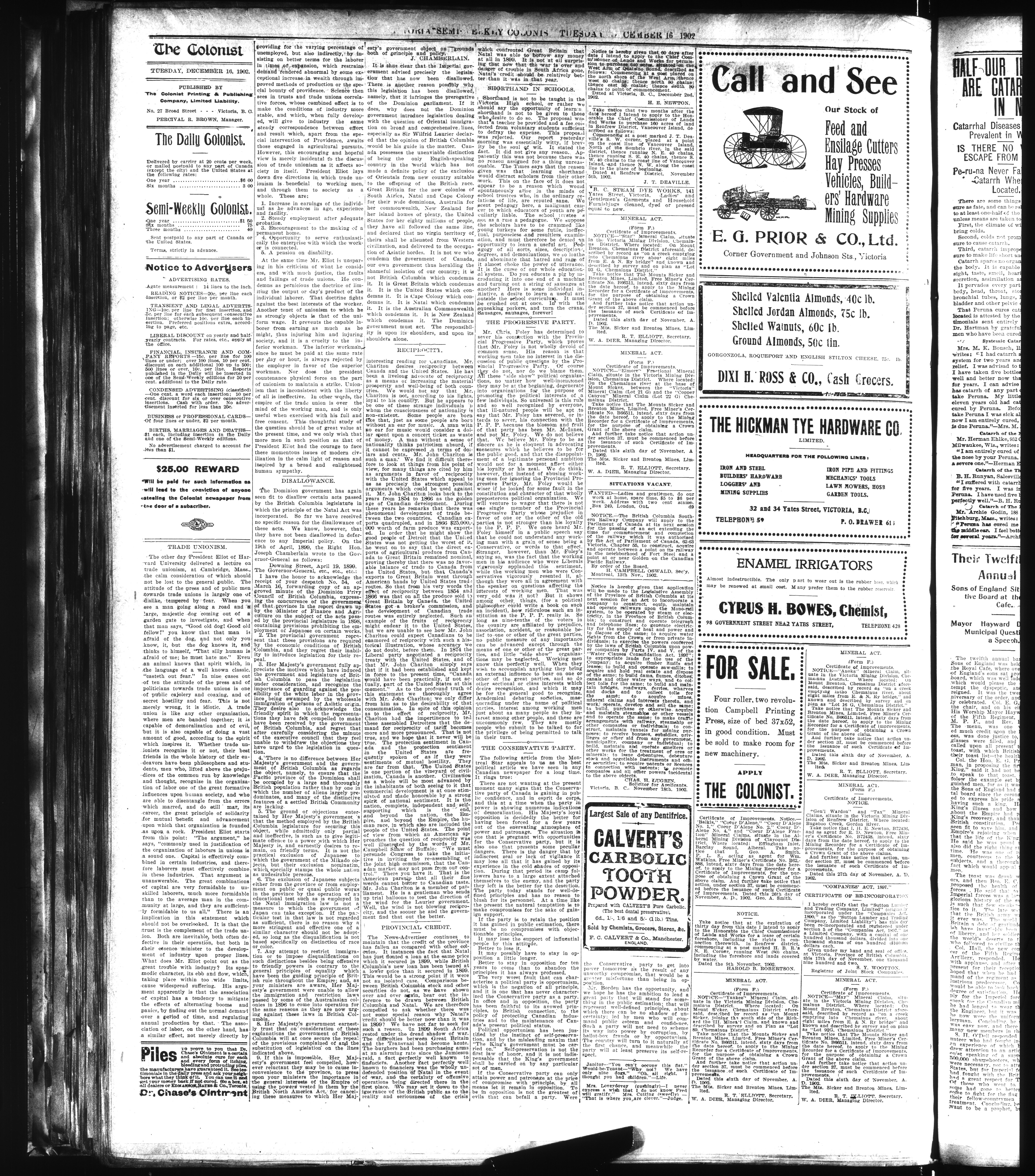The Semi-Weekly Colonist. : Volume LXVII (December 16, 1902)