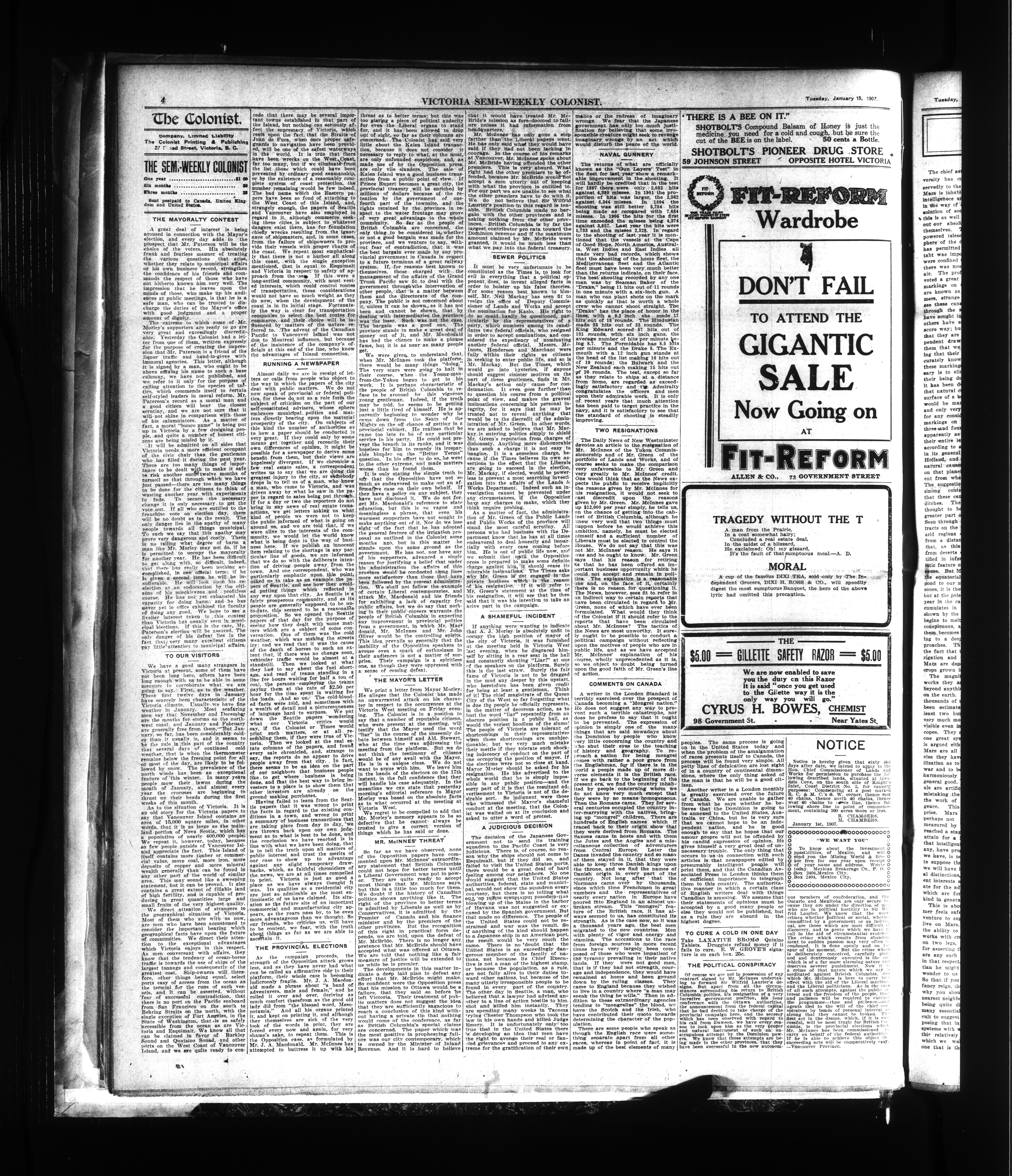 The Semi-Weekly Colonist. : Vol XLVIII, No. 110 (January 15, 1907)