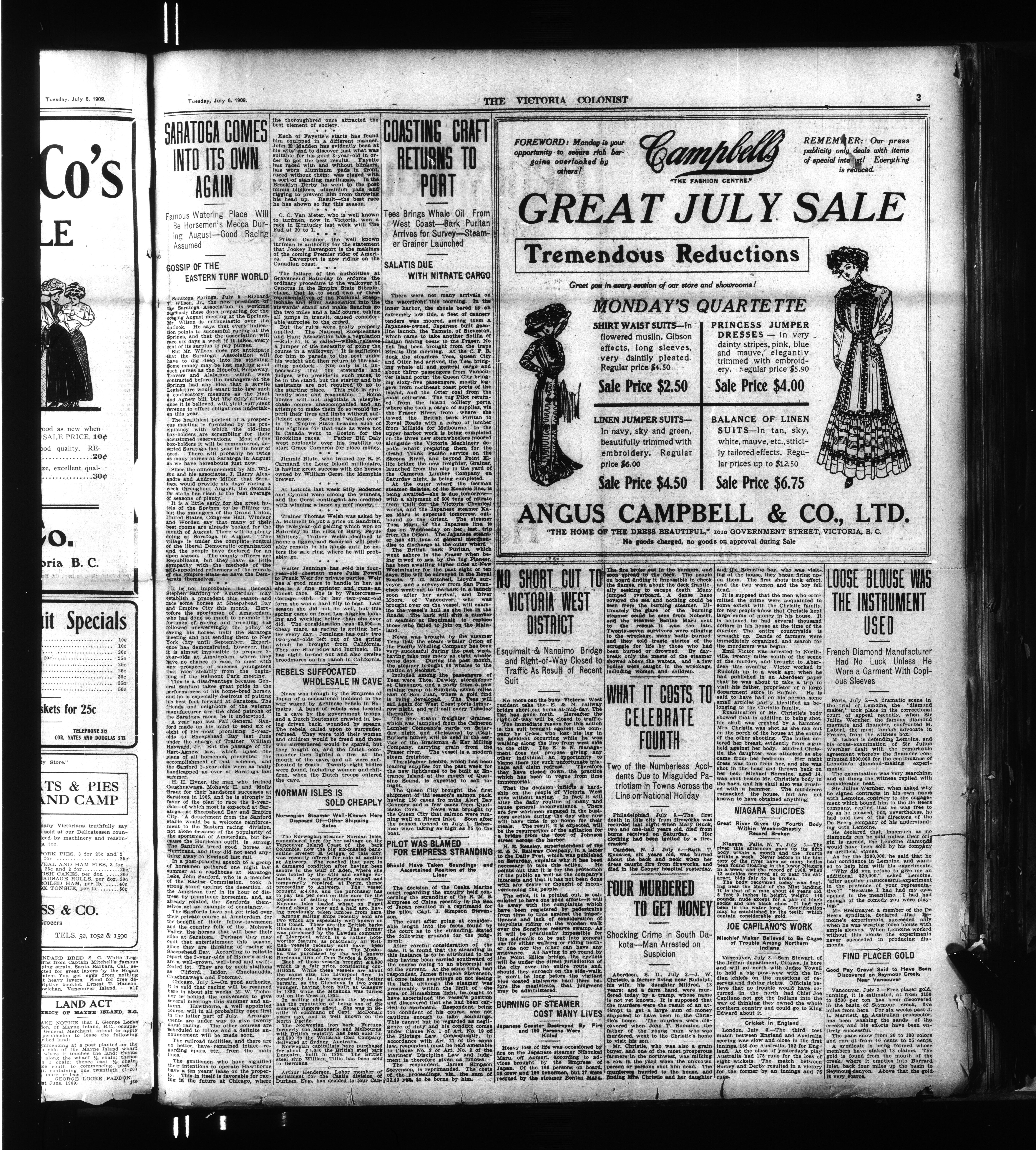 The Semi-Weekly Colonist. : Vol. L, No. 263 (July 6, 1909)
