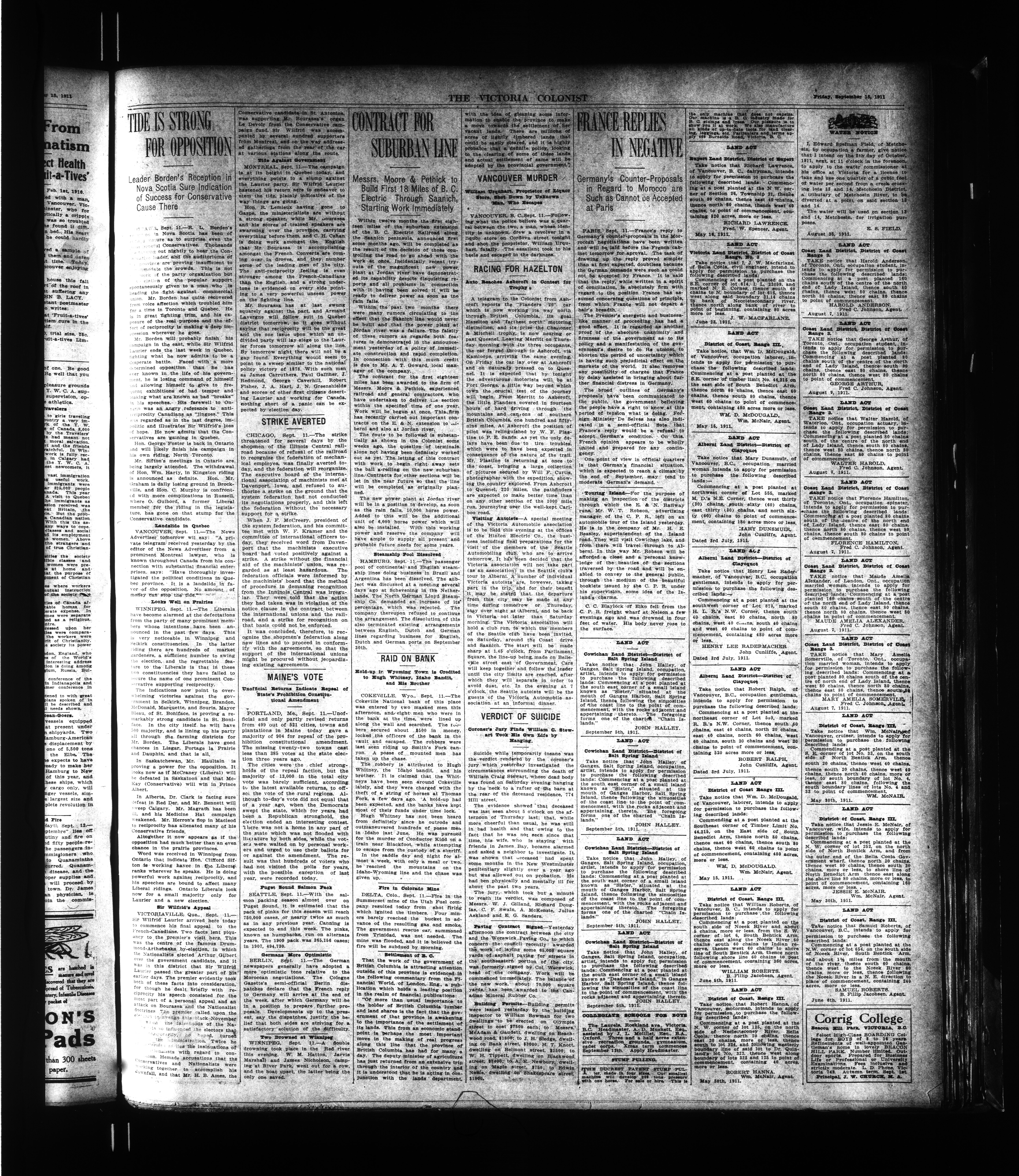 The Semi-Weekly Colonist. : Vol. L, No. 492 (September 15, 1911)