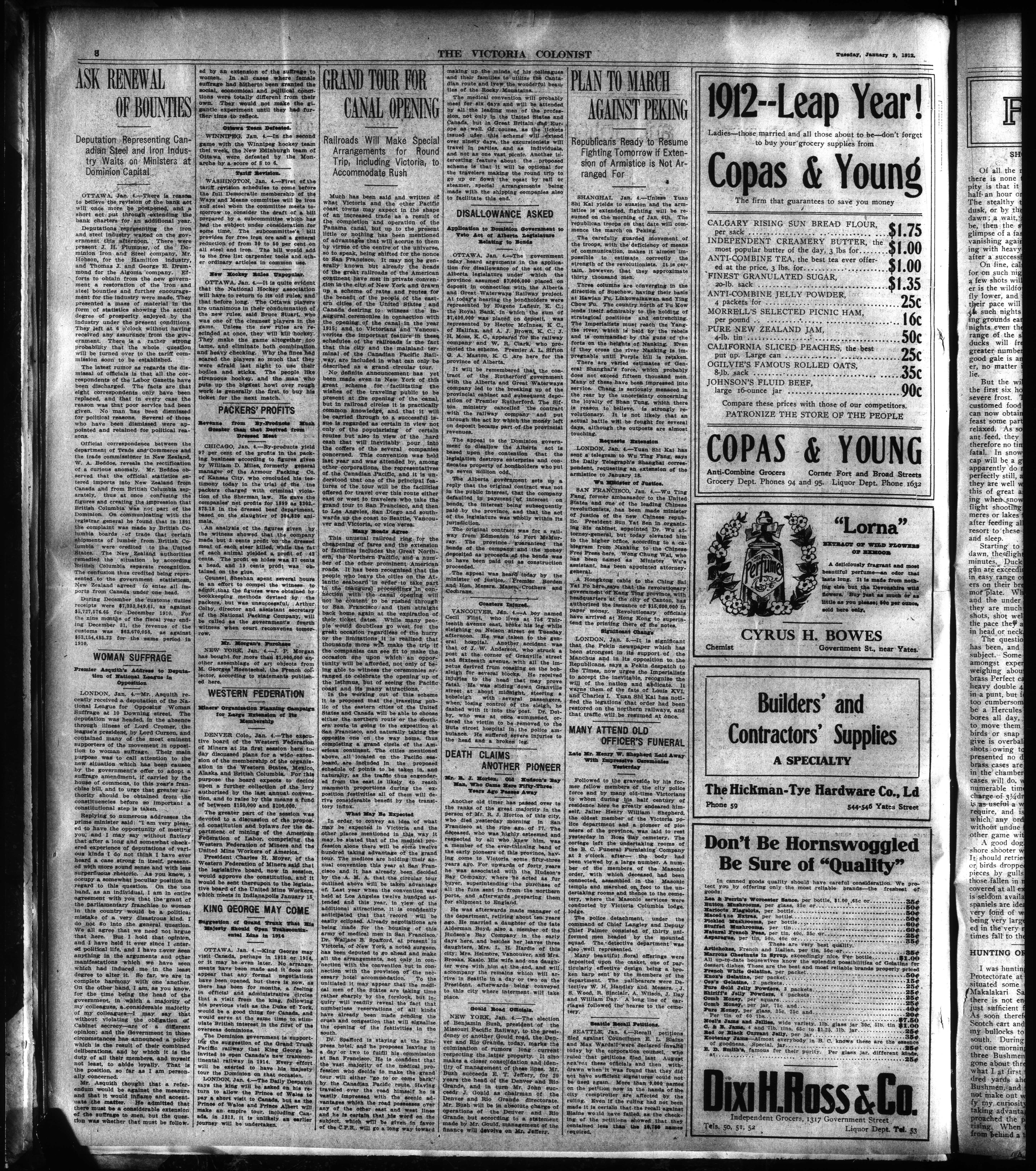 The Semi-Weekly Colonist. : Vol. L, No. 524 (January 9, 1912)