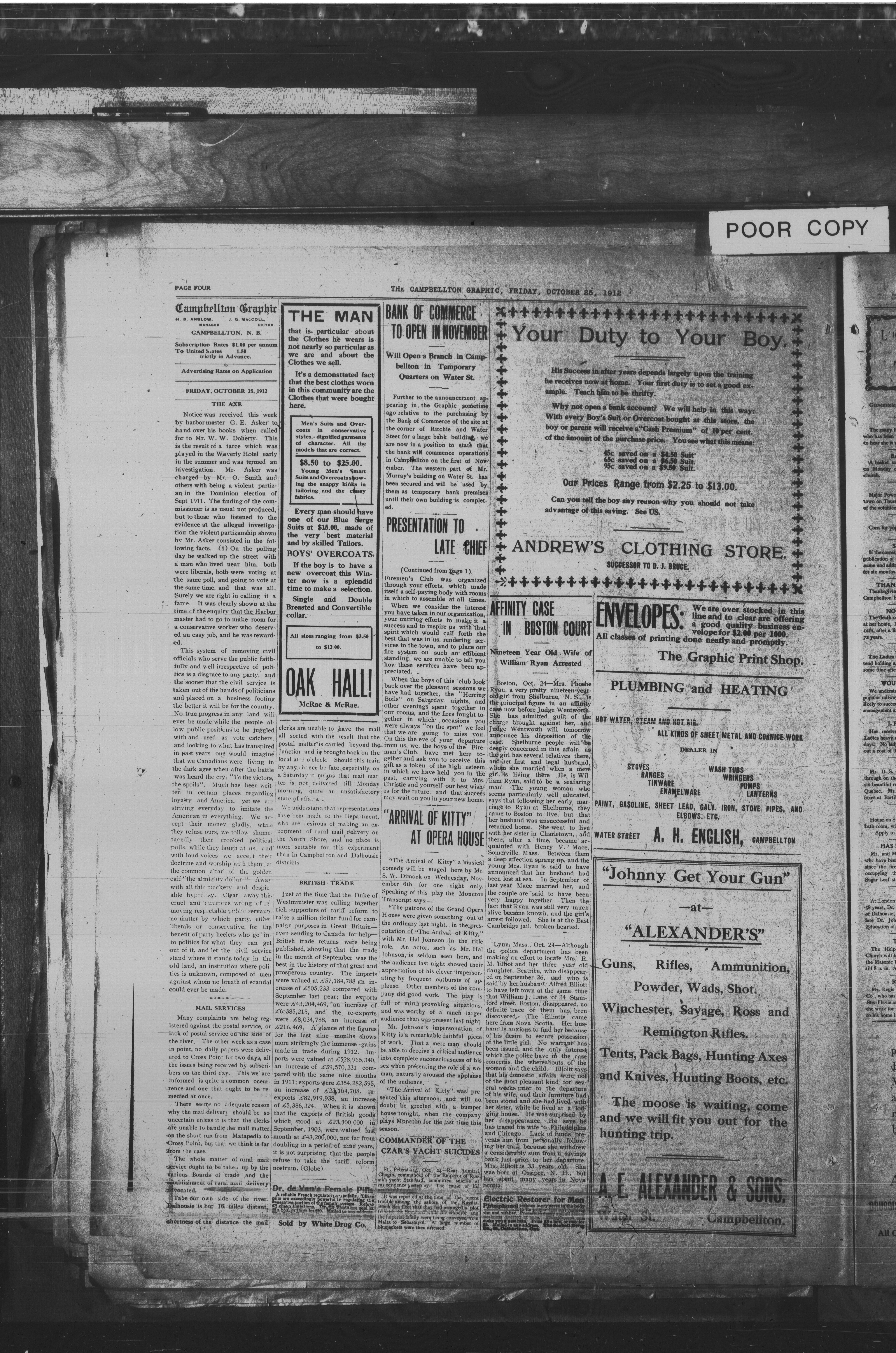 - The Campbellton Graphic : Vol. XV, No. 16 (October 25, 1912)