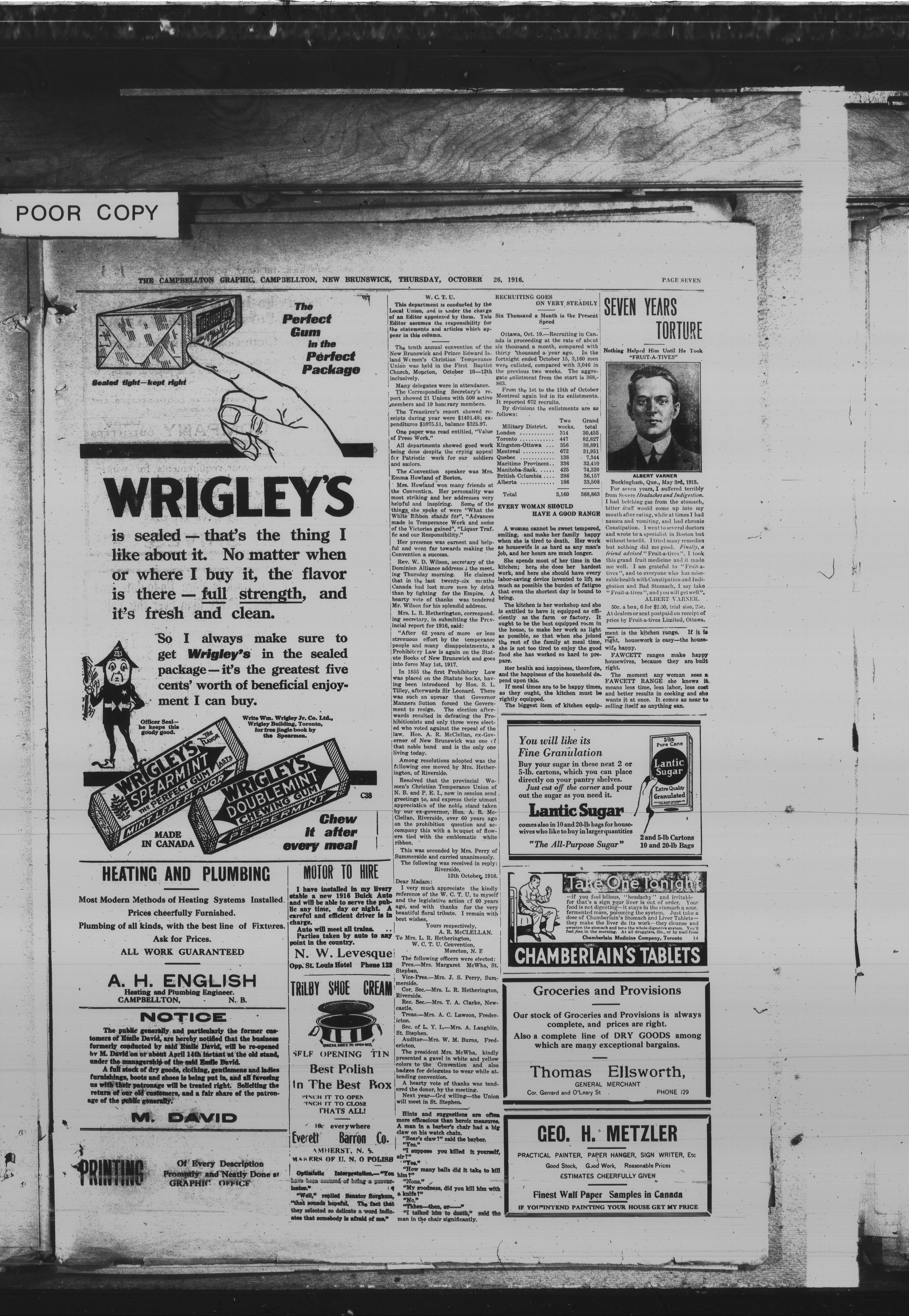 - The Campbellton Graphic : Vol. XIX, No. 16 (October 26, 1916)