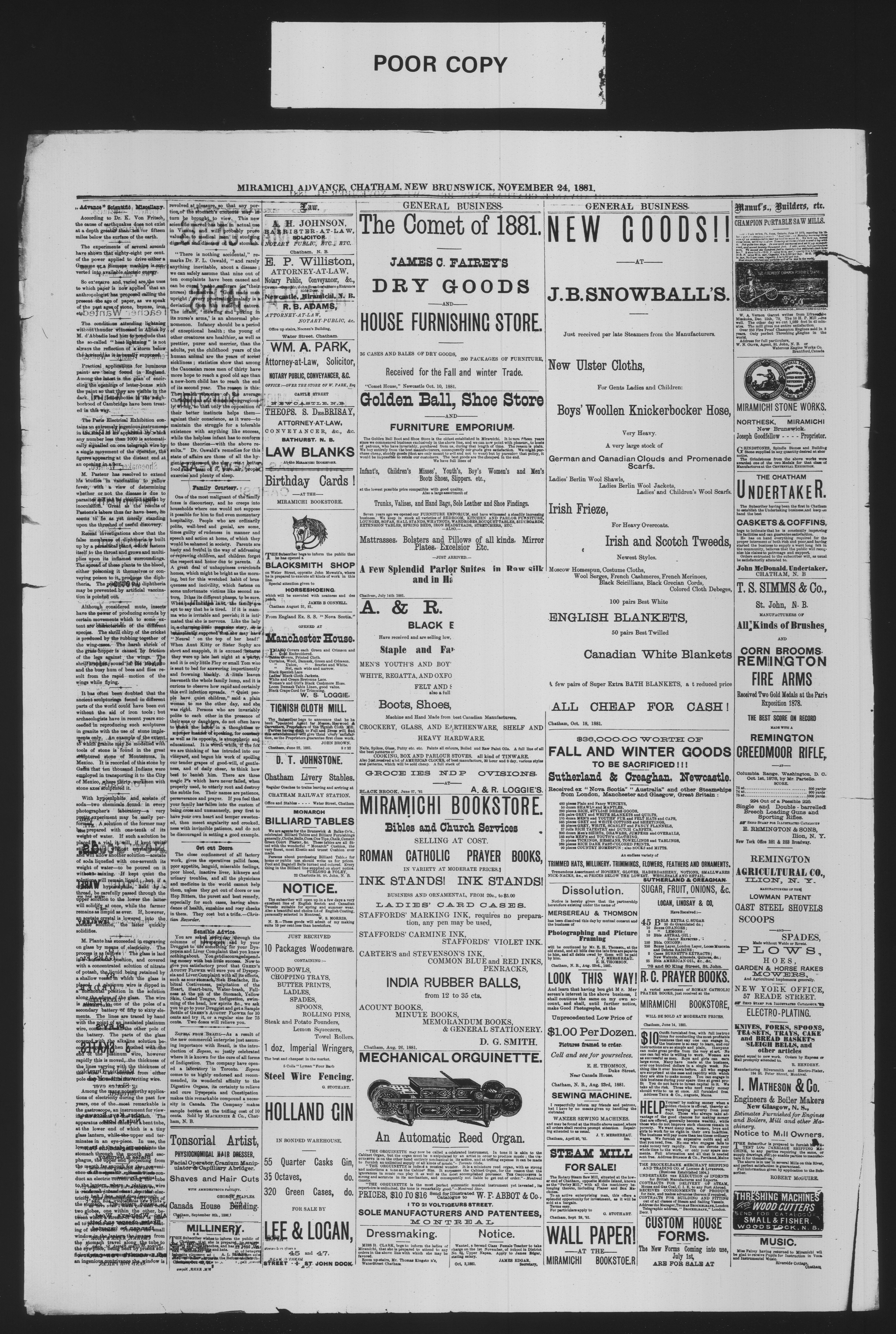 Chatham, New Brunswick : D.G. Smith, Editor & Proprietor; 4 images avec recherche en texte intégral
