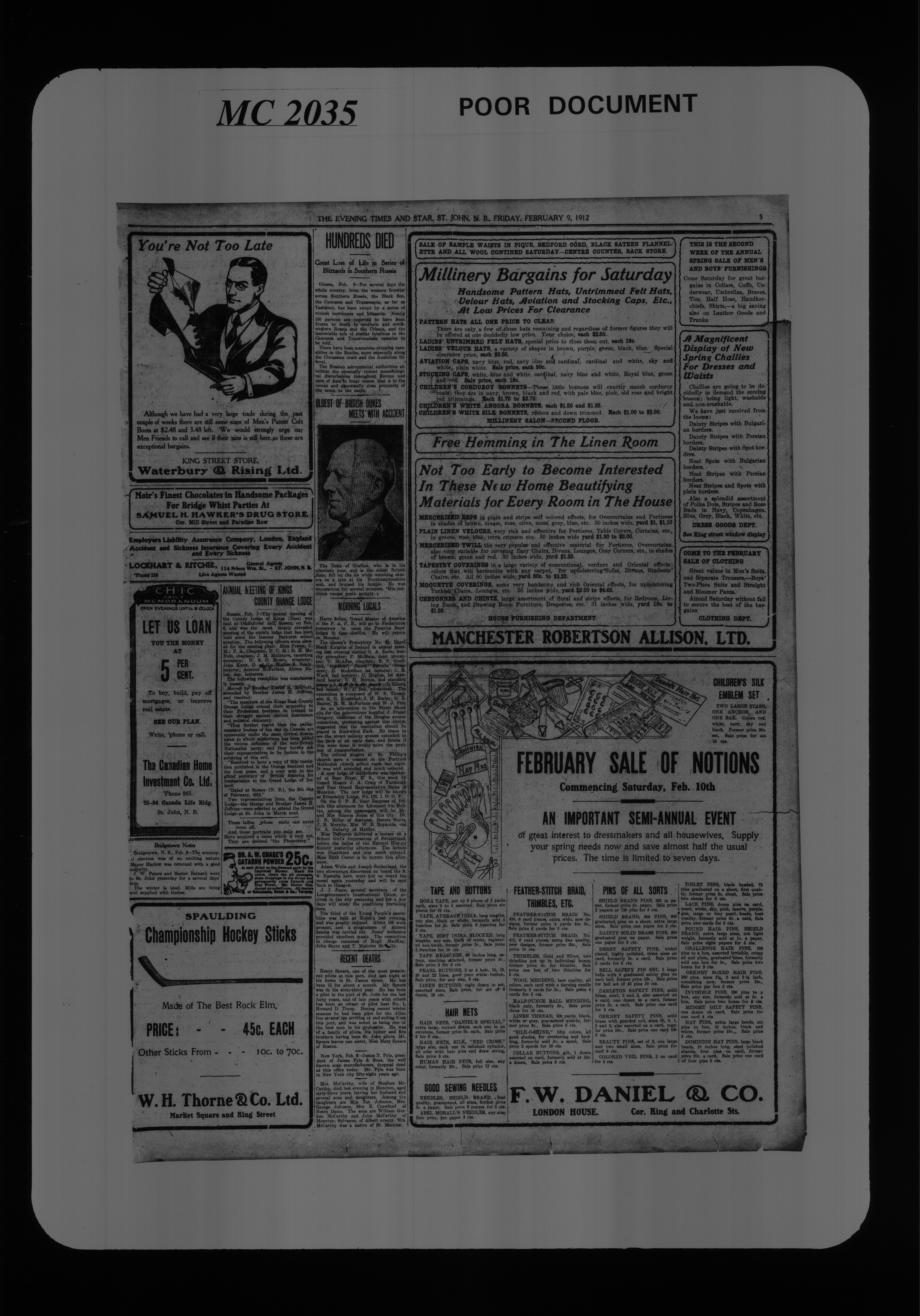 The Evening times star : Vol. VII, No. 110 (February 9, 1912)