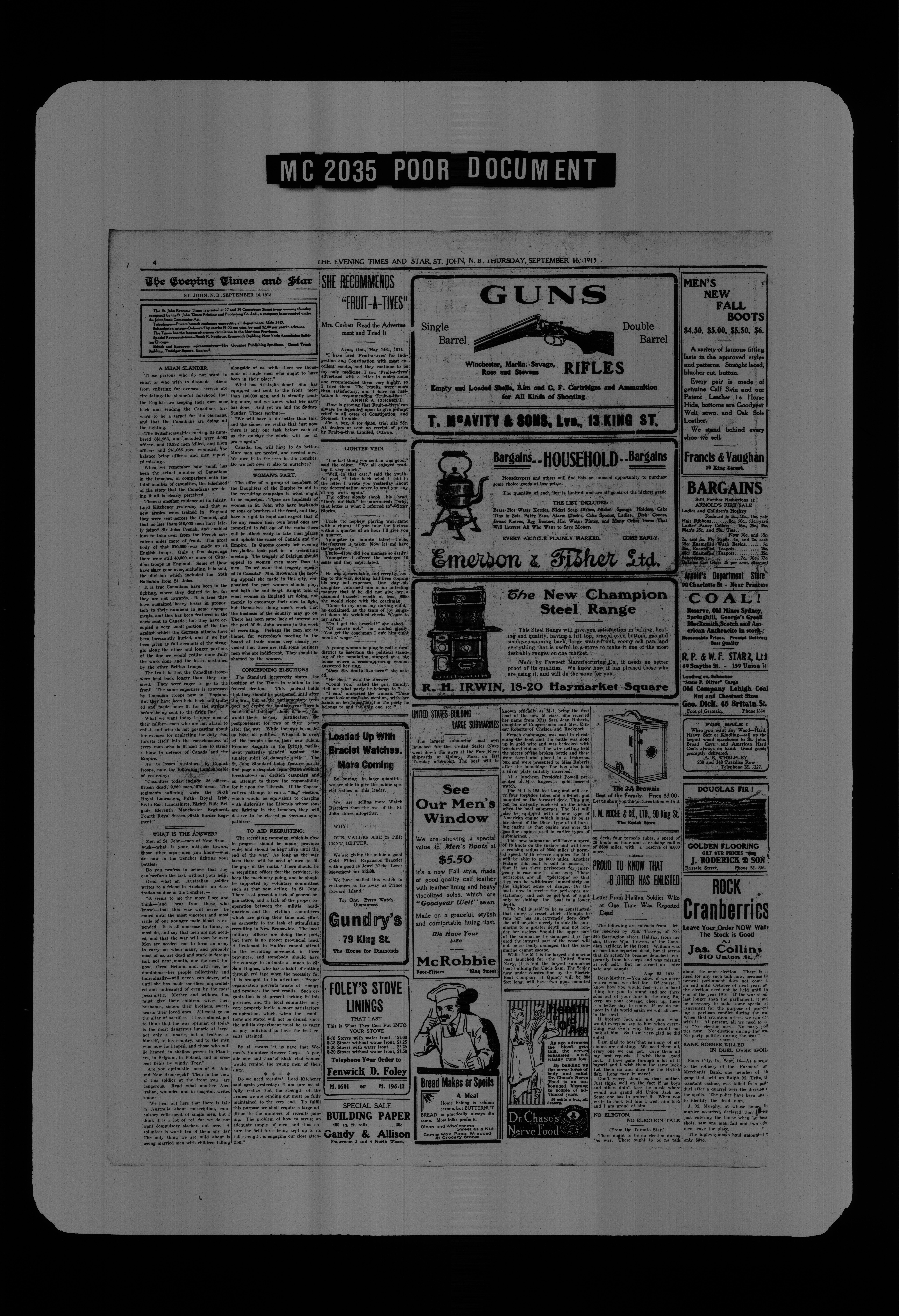 The Evening times star : Vol. X, No. 266 (September 16, 1915)