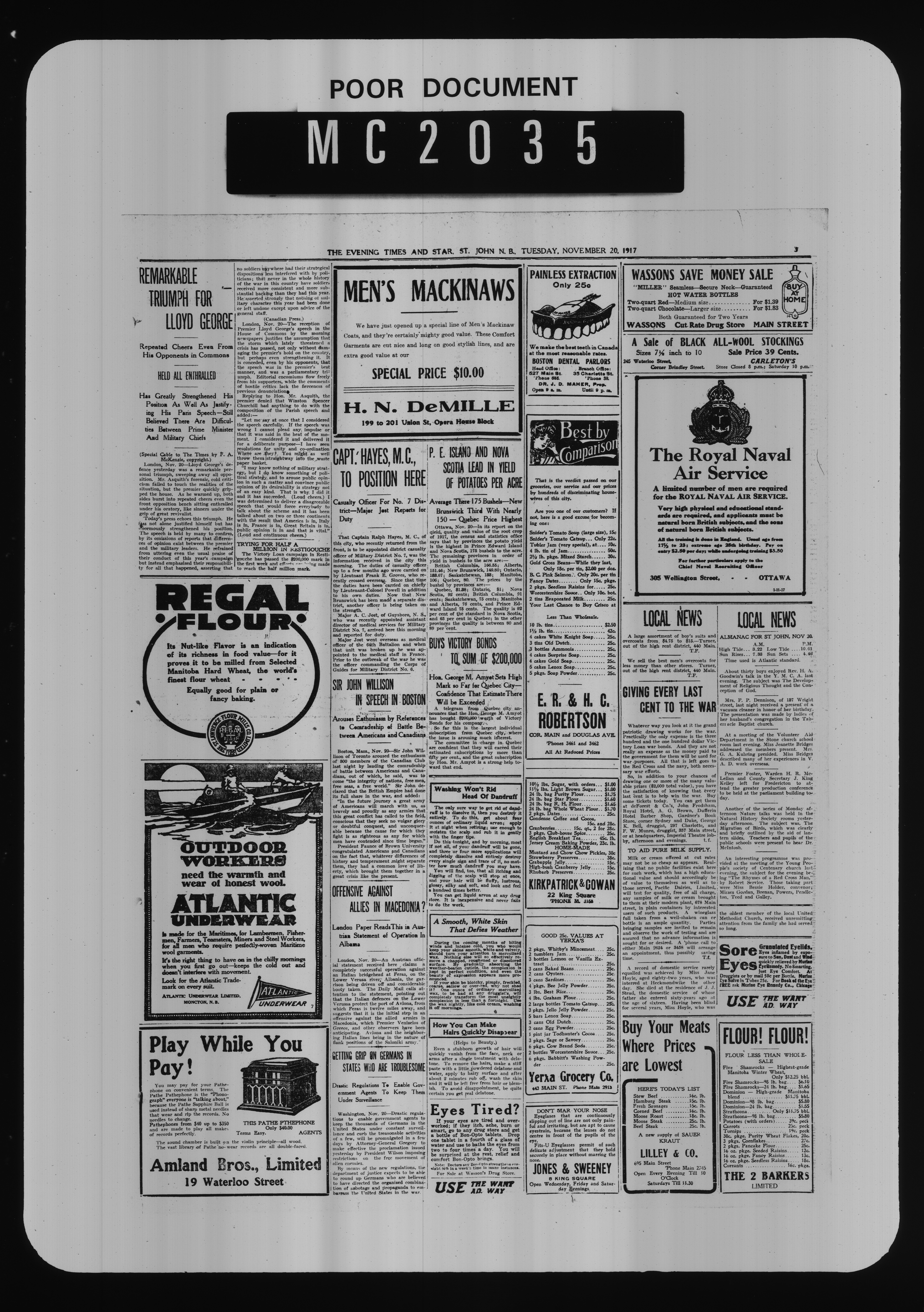 The Evening times star : Vol. XIV, No. 43 (November 20, 1917)