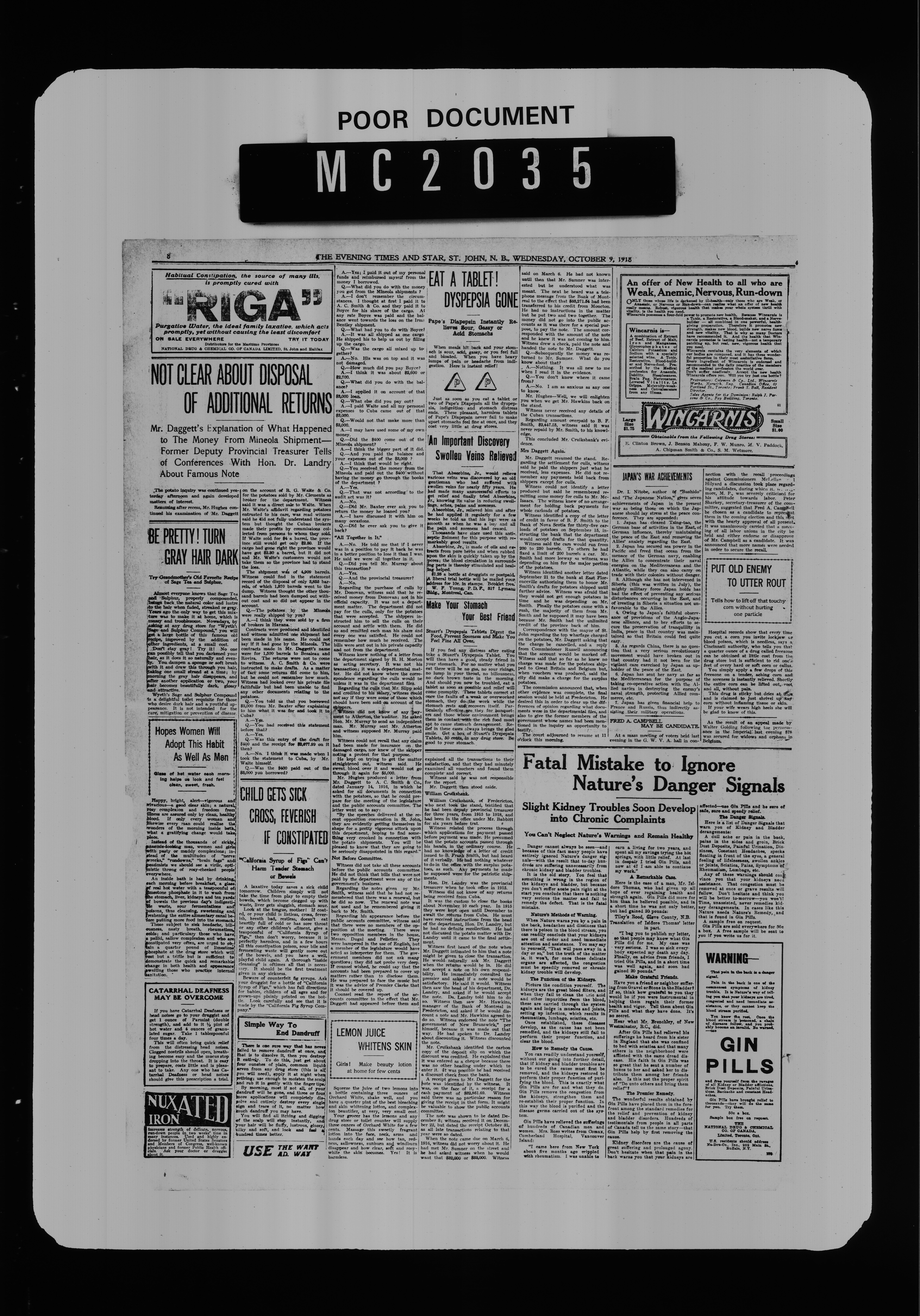 The Evening times star : Vol. XV, No. 8 (October 9, 1918)