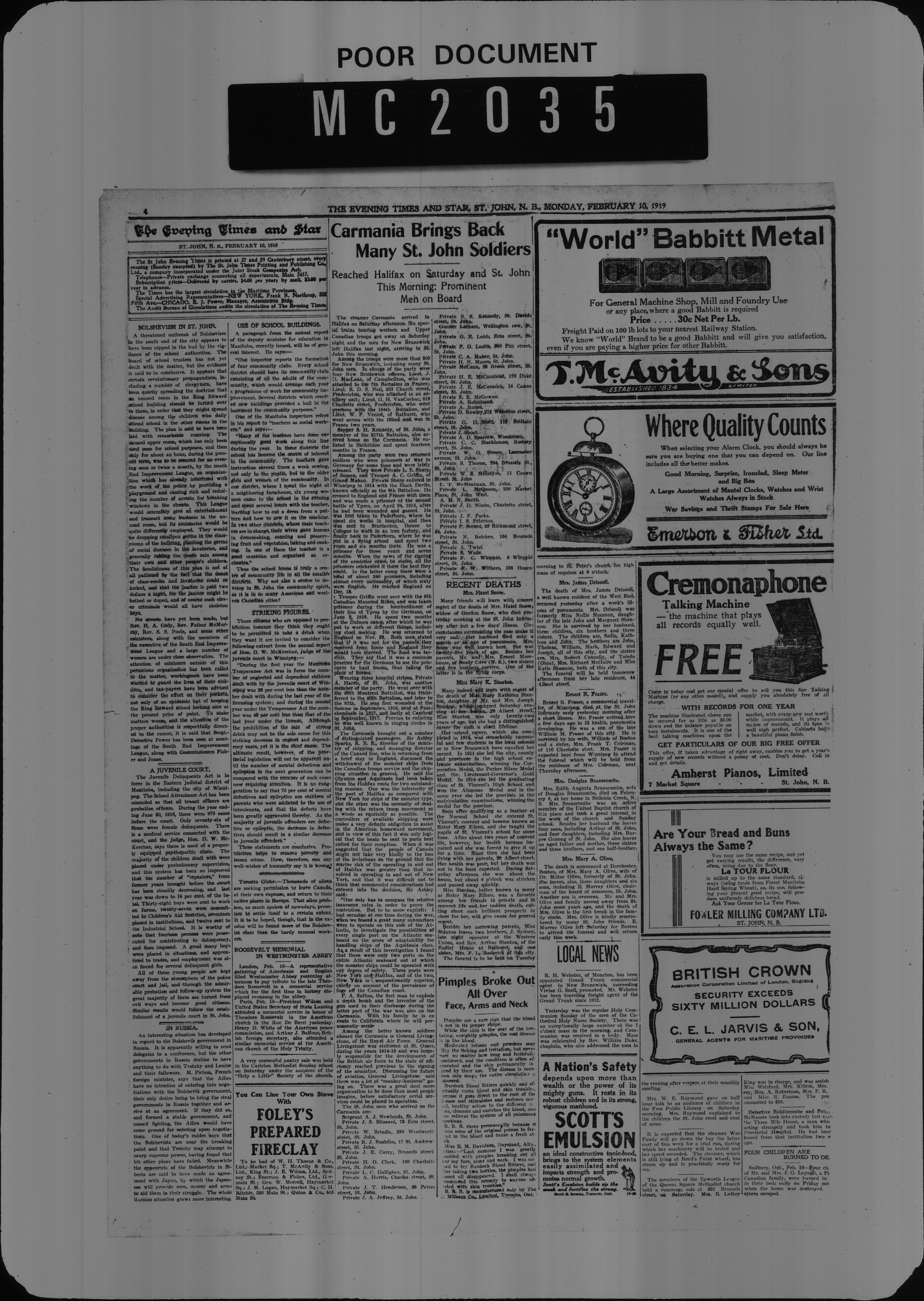 The Evening times star : Vol. XV, No. 120 (February 10, 1919)