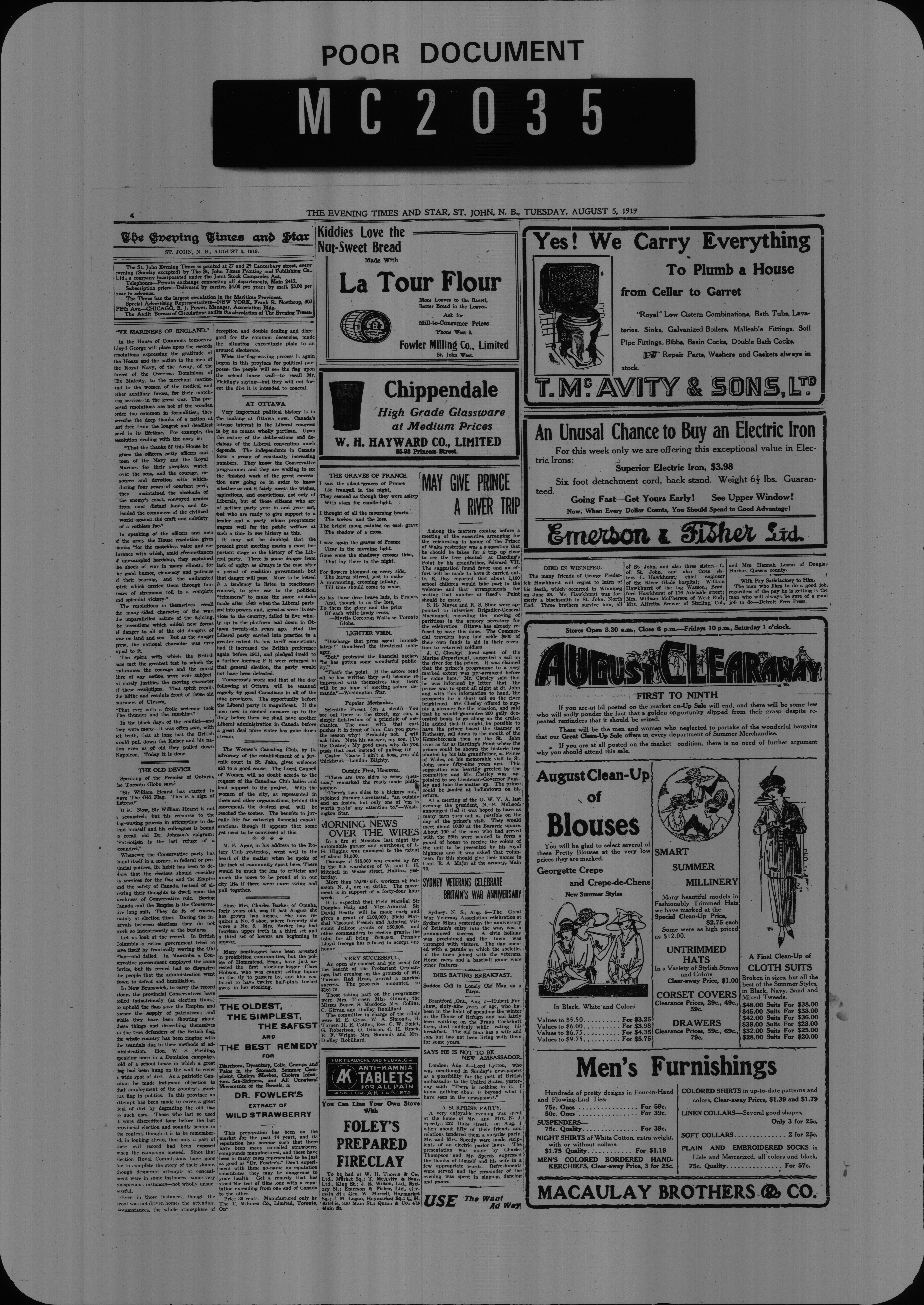 The Evening times star : Vol. XV, No. 256 (August 5, 1919)
