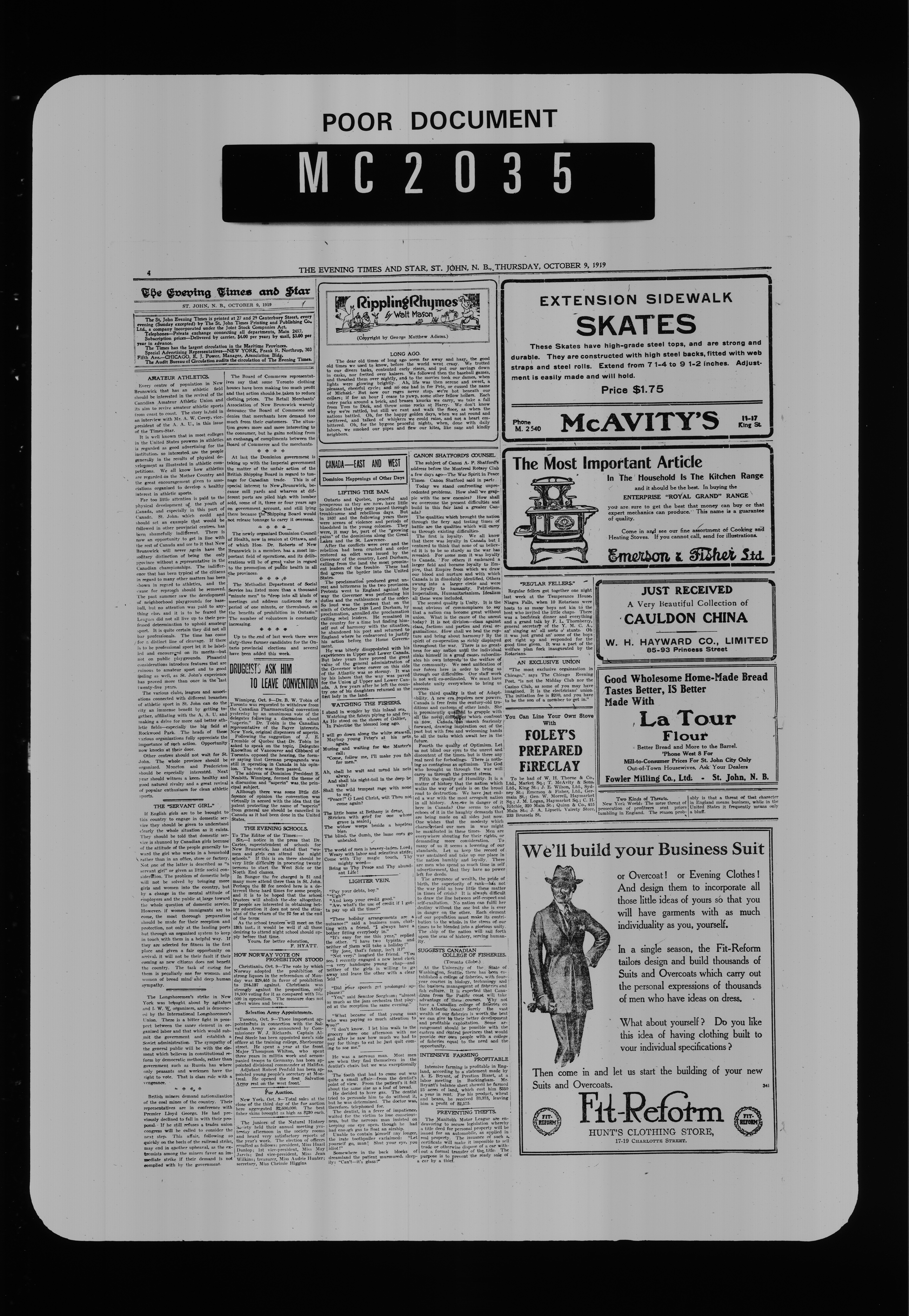 The Evening times star : Vol. XVI, No. 8 (October 9, 1919)