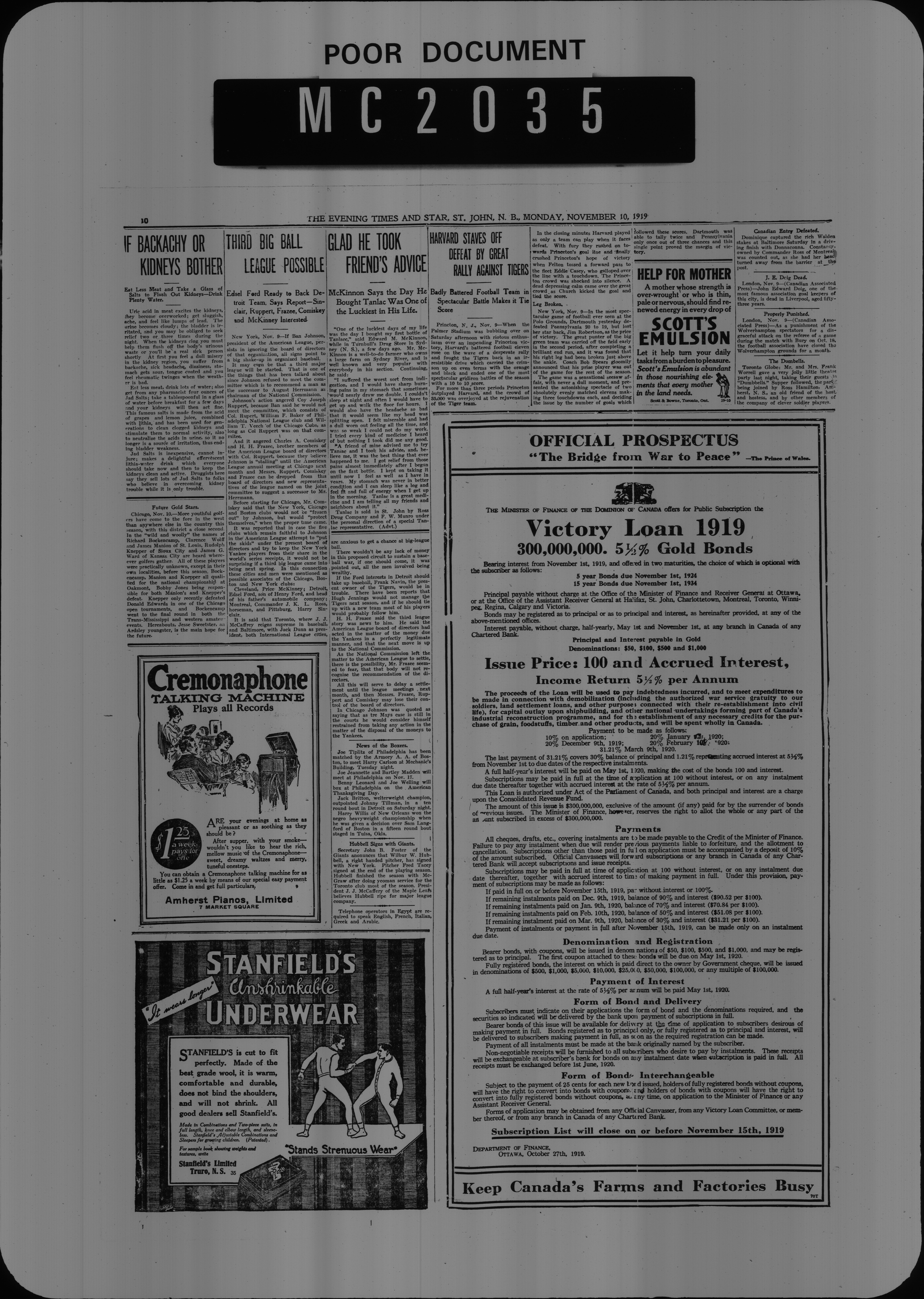 The Evening times star : Vol. XVI, No. 34 (November 10, 1919)