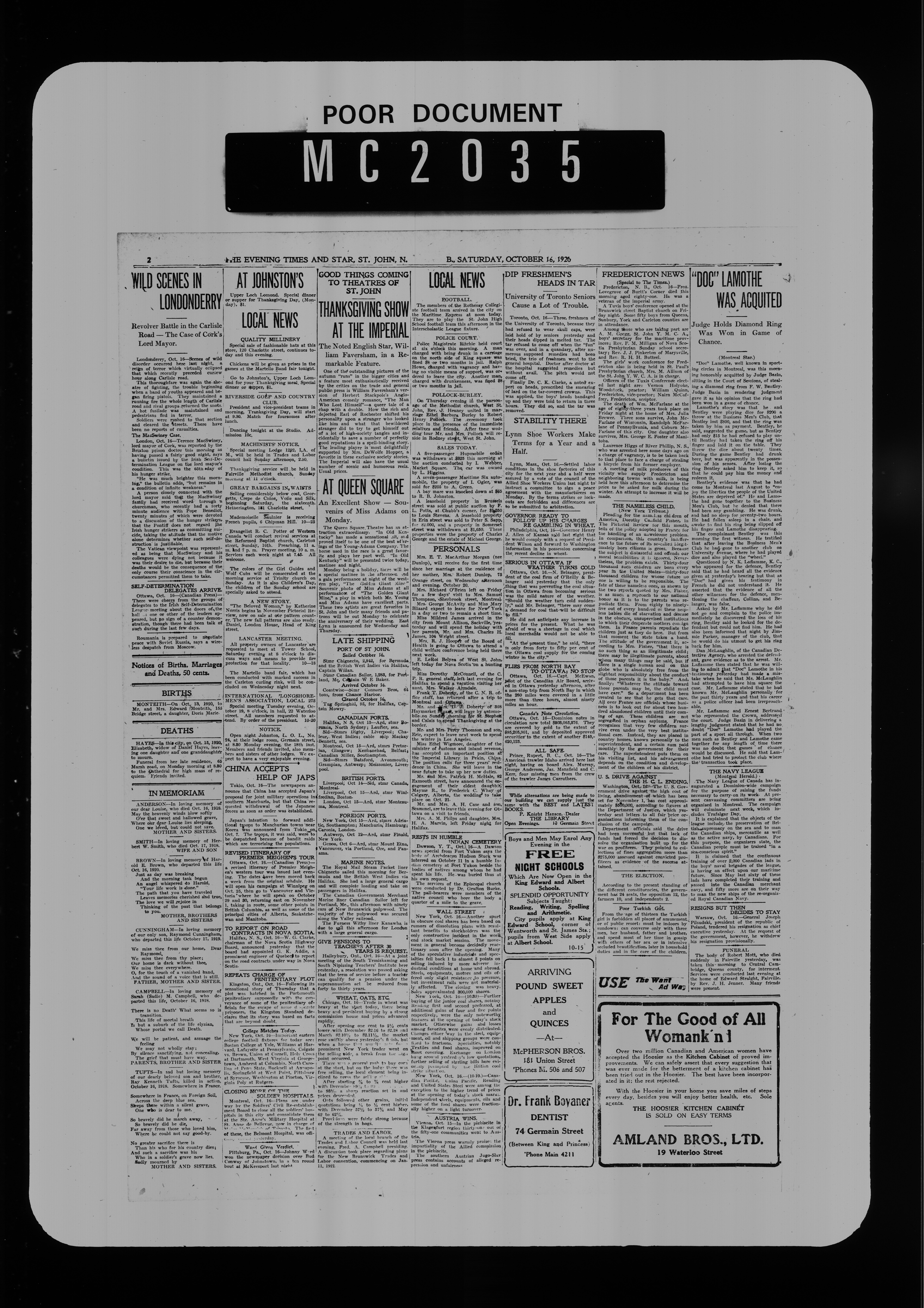The Evening times star : Vol. XVII, No. 14 (October 16, 1920)