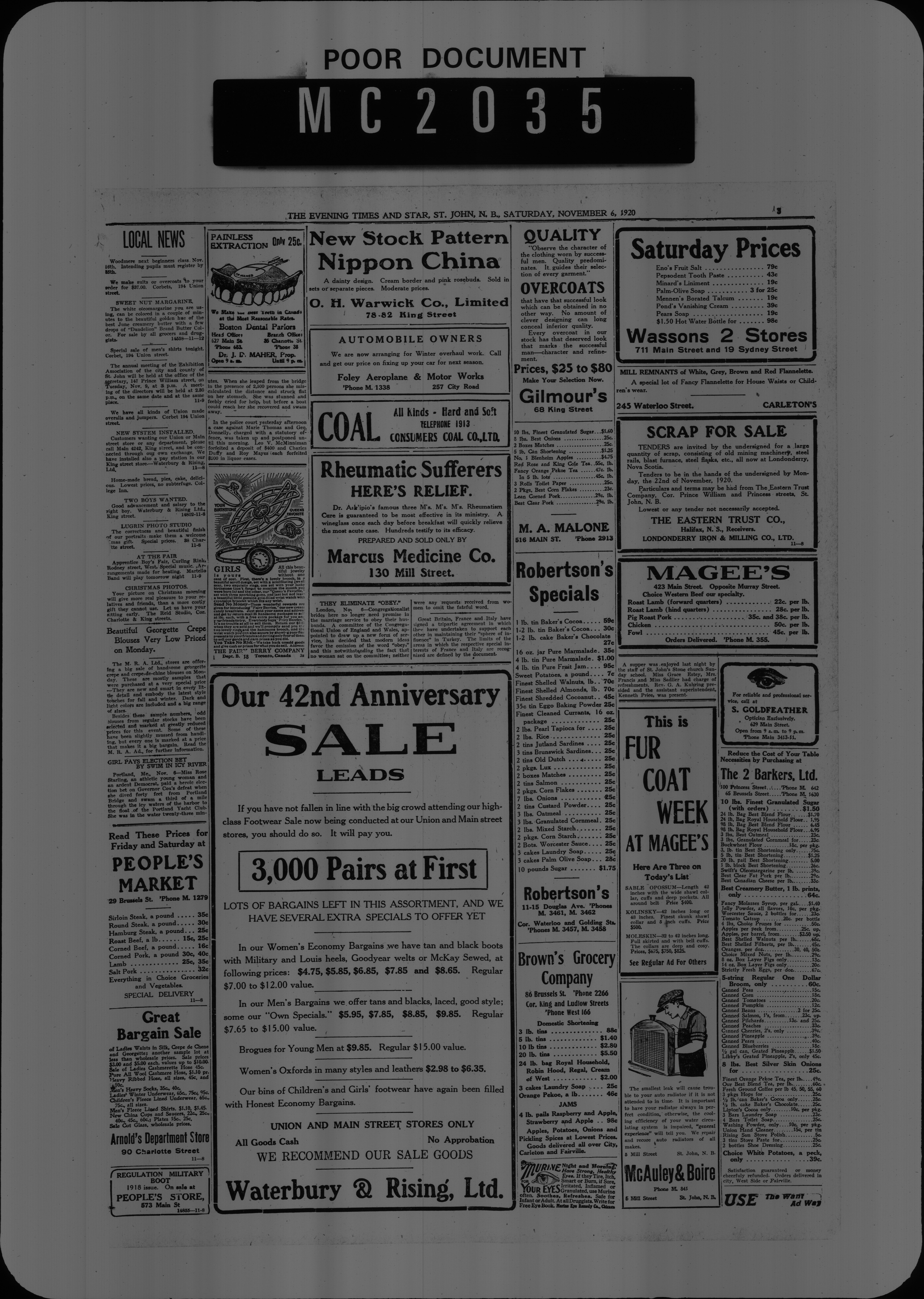 The Evening times star : Vol. XVII, No. 31 (November 6, 1920)