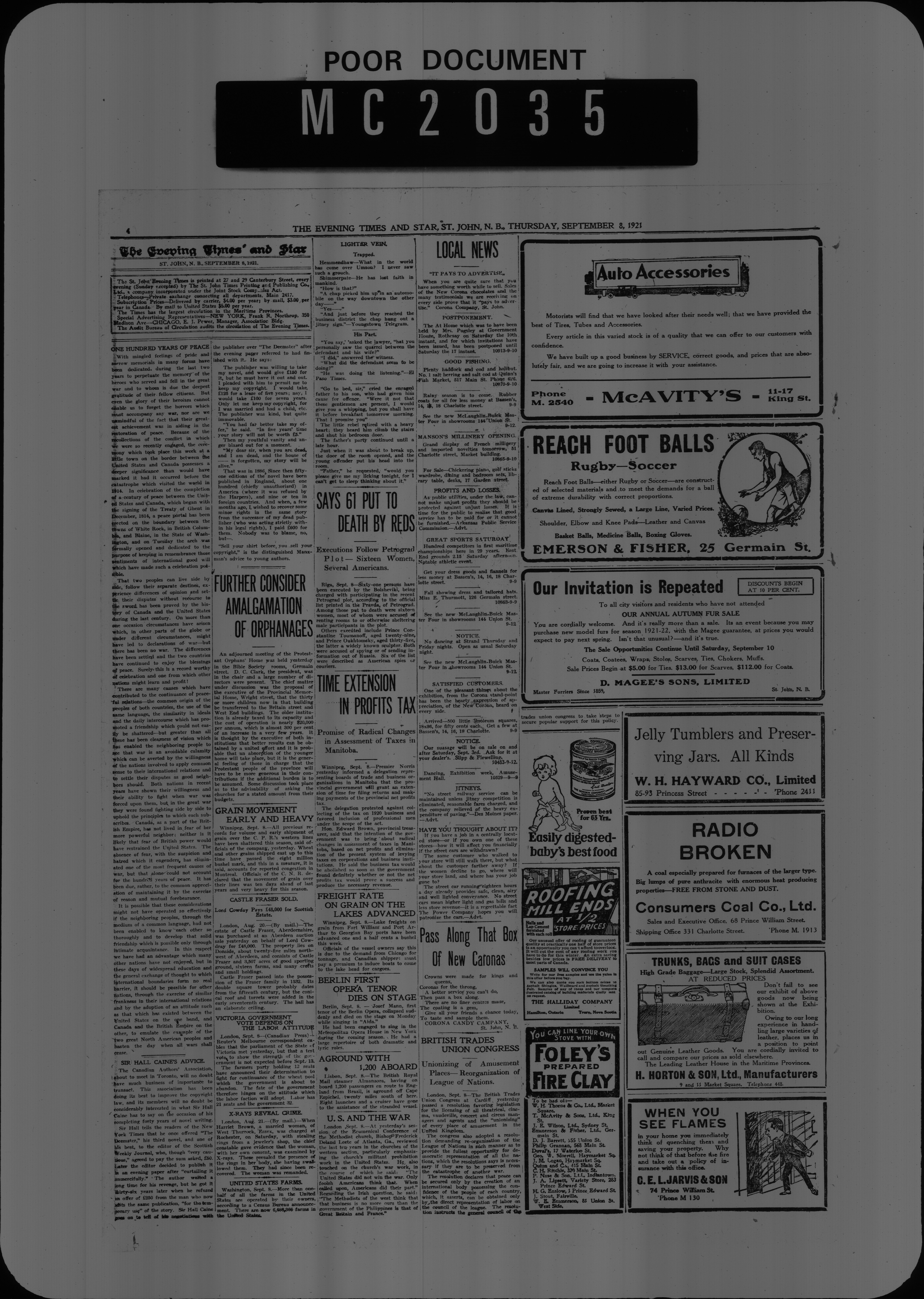 The Evening times star : Vol. XVII, No. 286 (September 8, 1921)