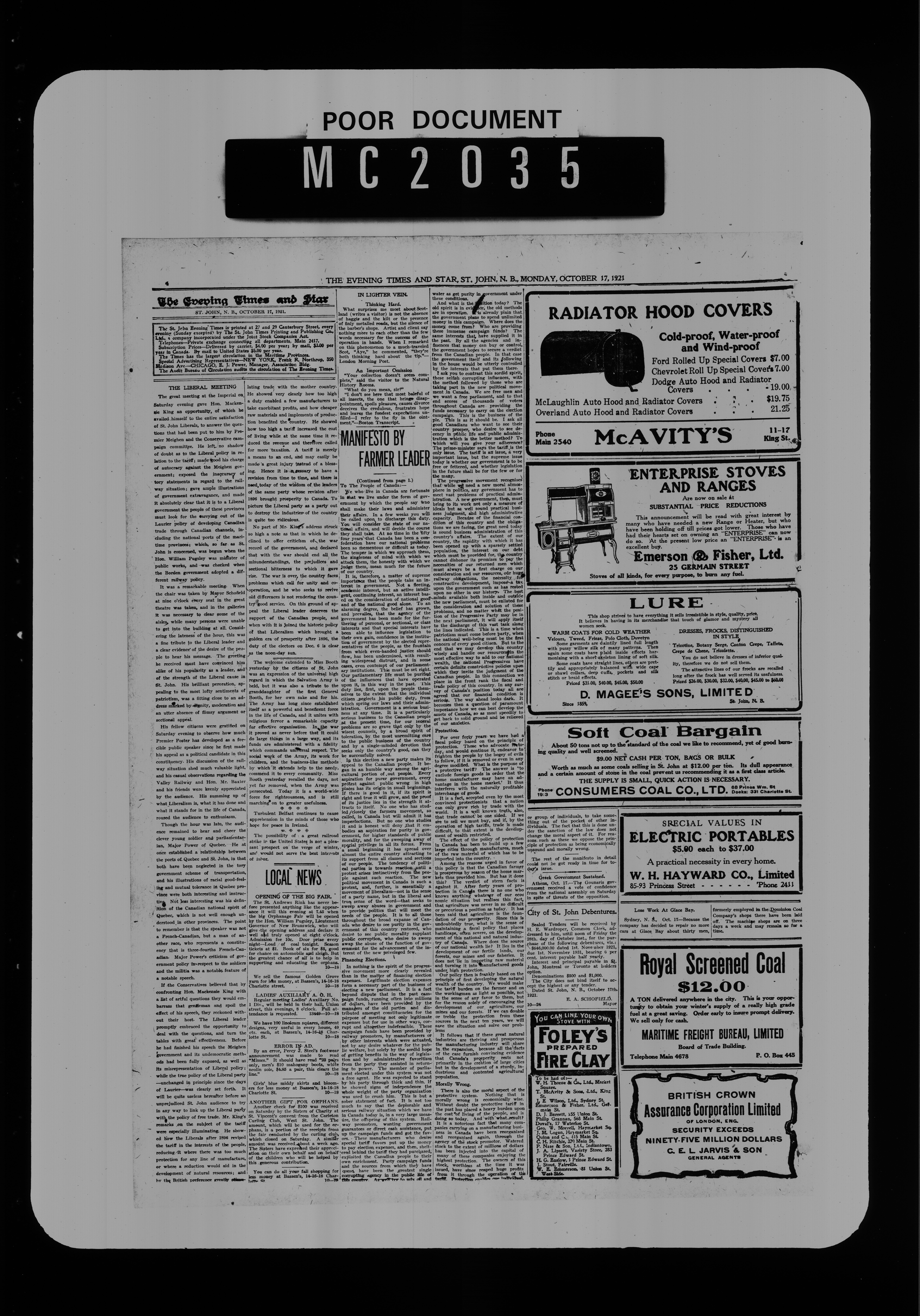 The Evening times star : Vol. XVIII, No. 14 (October 17, 1921)