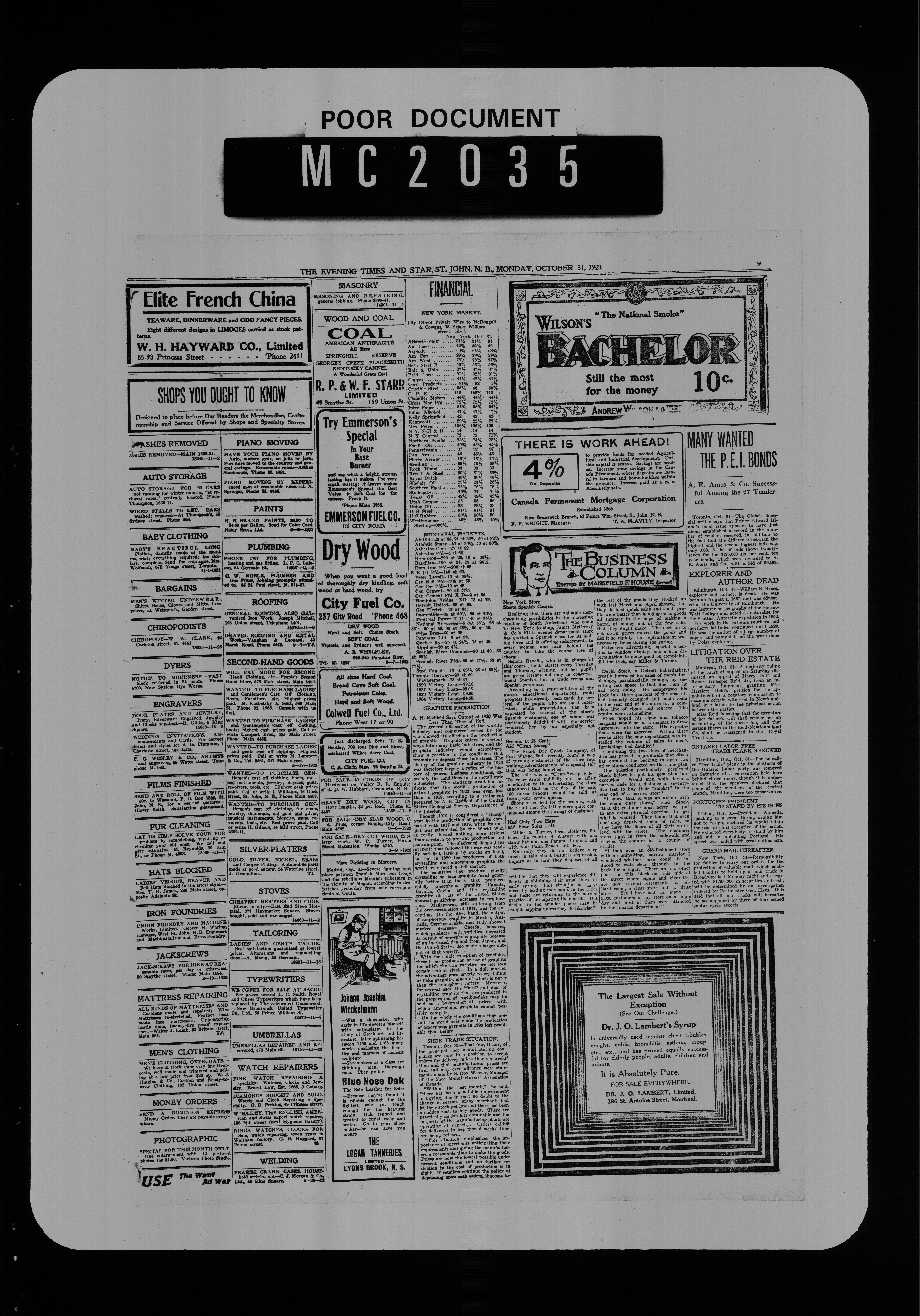 The Evening times star : Vol. XVIII, No. 26 (October 31, 1921)