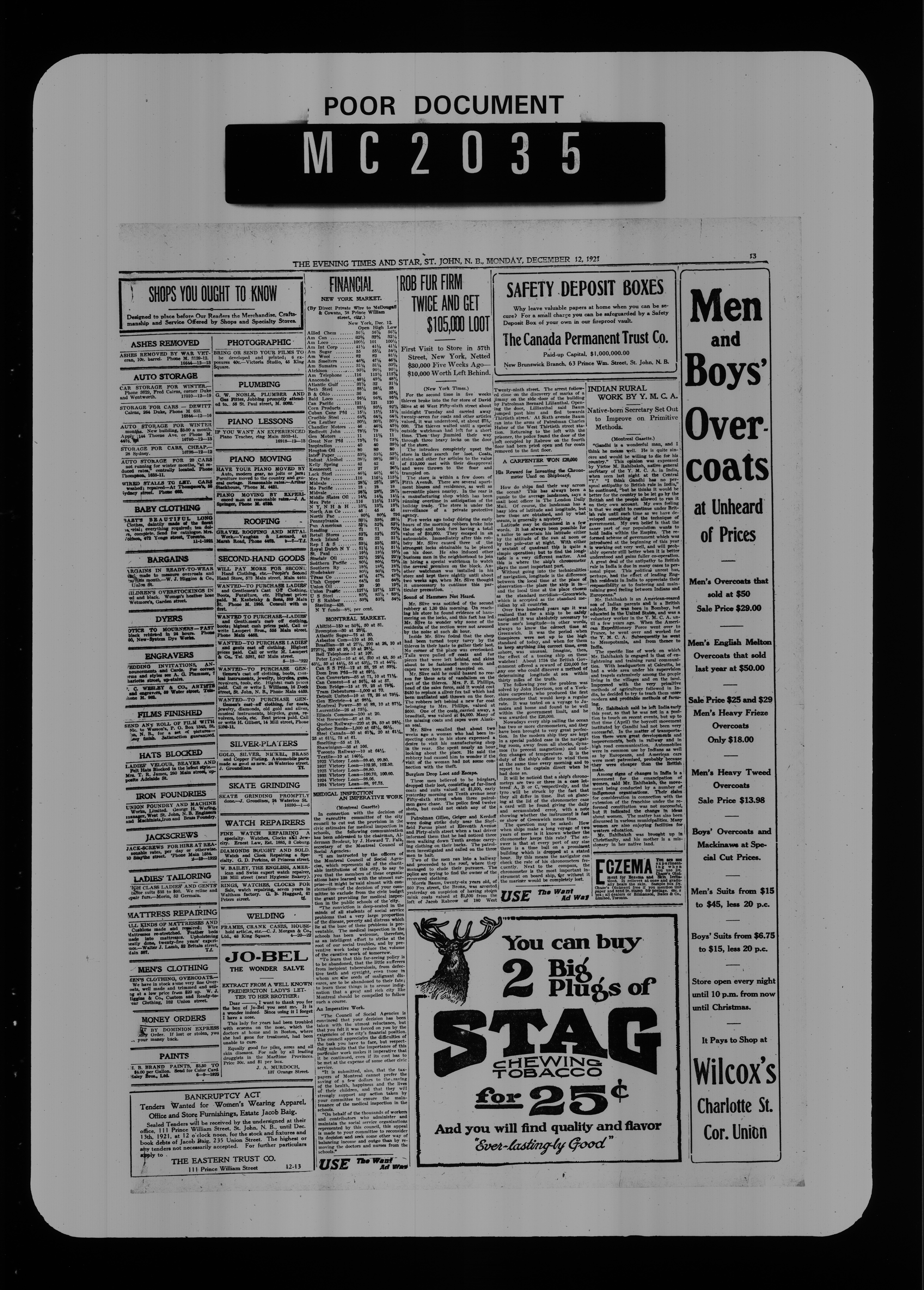 The Evening times star : Vol. XVIII, No. 61 (December 12, 1921)