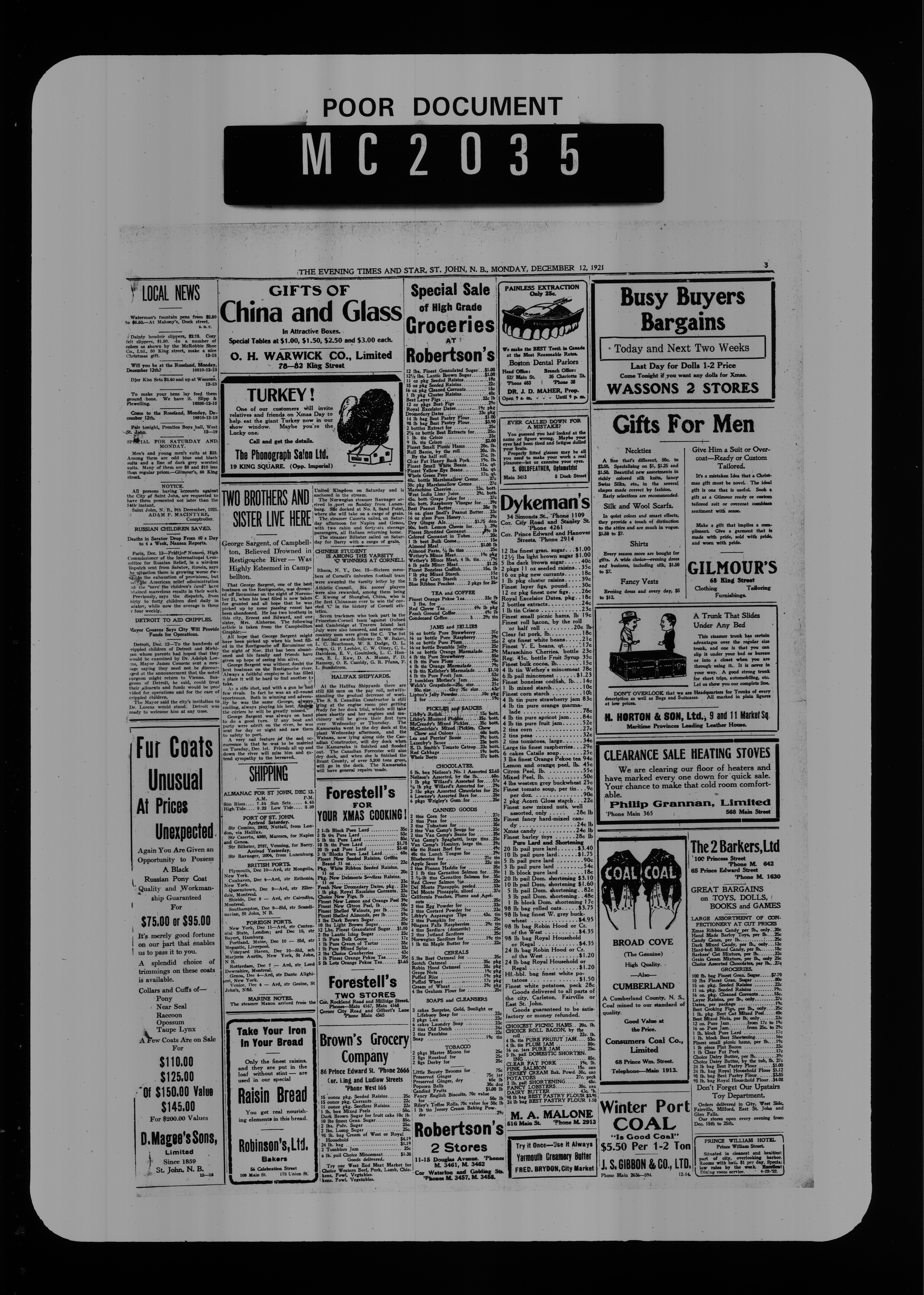 The Evening times star : Vol. XVIII, No. 61 (December 12, 1921)
