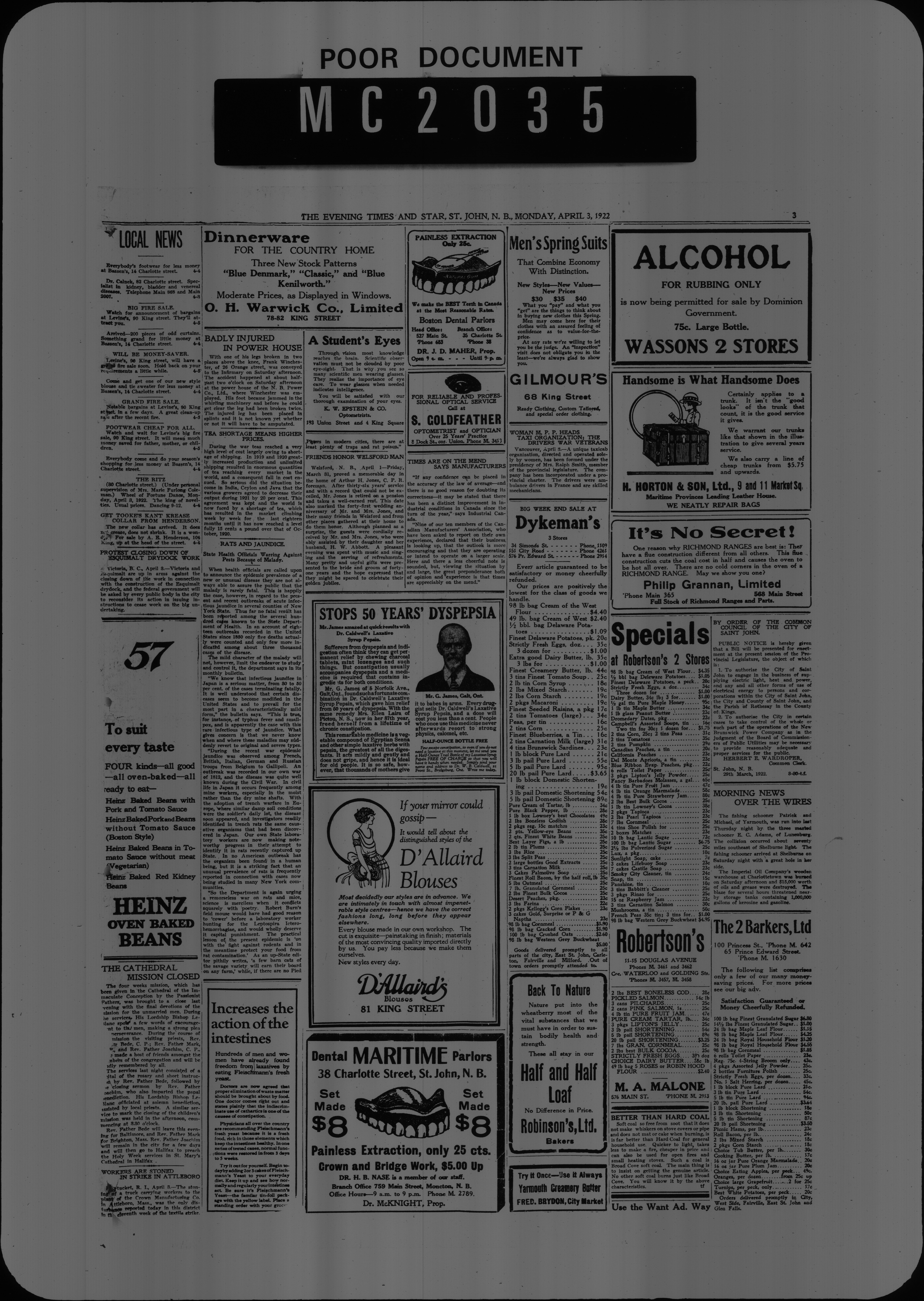 The Evening times star : Vol. XVIII, No. 155 (April 3, 1922)