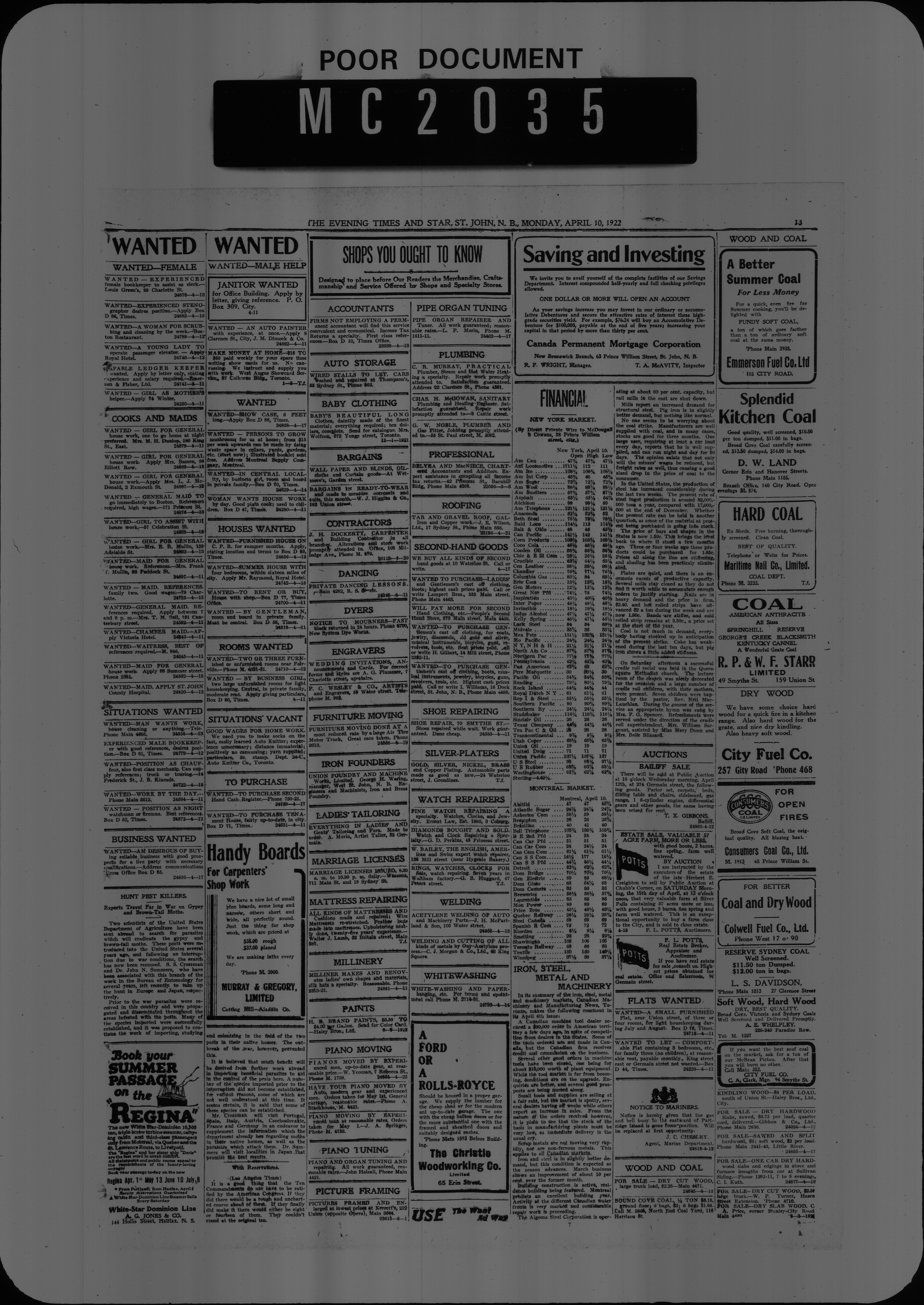 The Evening times star : Vol. XVIII, No. 161 (April 10, 1922)