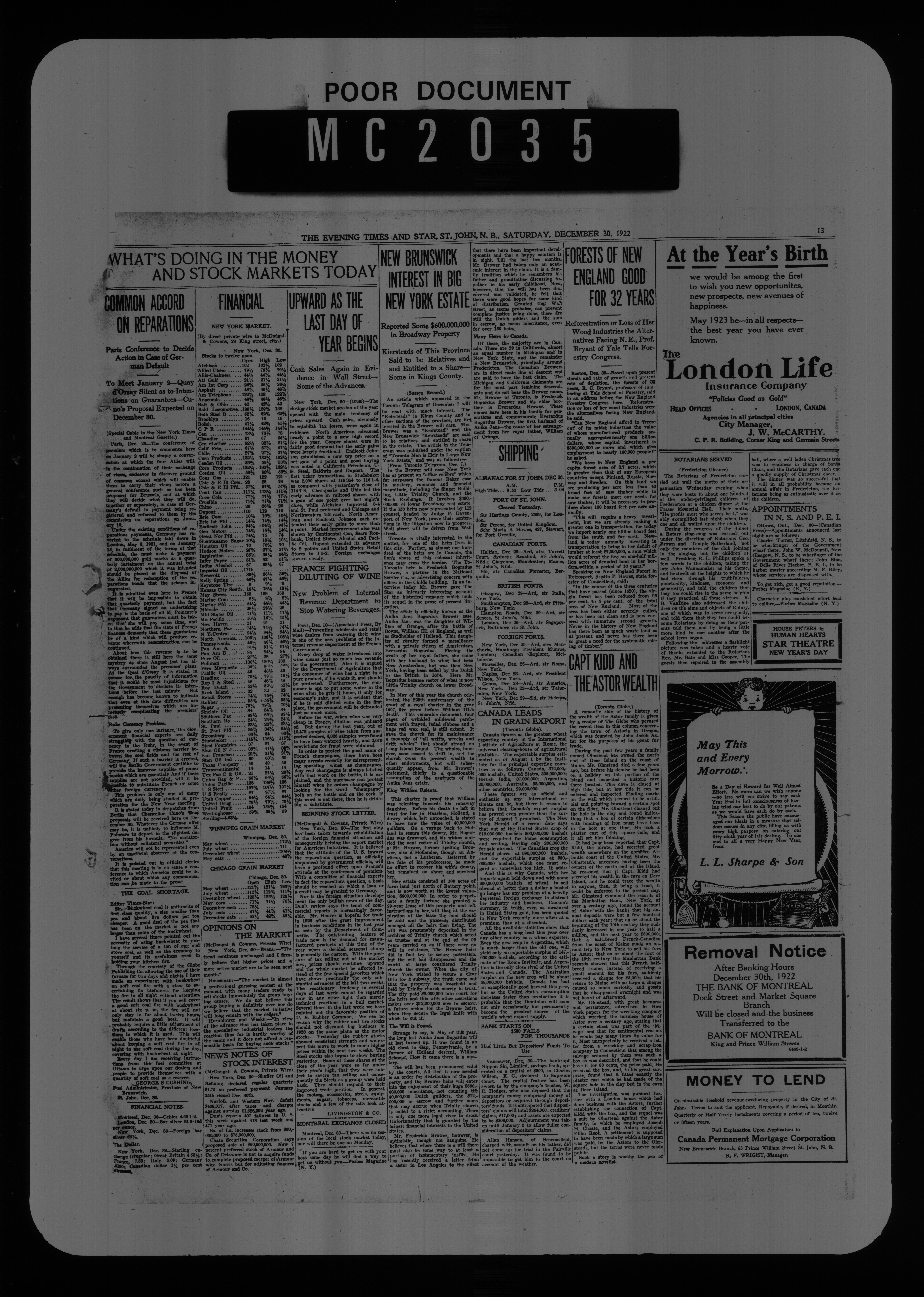 The Evening times star : Vol. XIX, No. 76 (December 30, 1922)