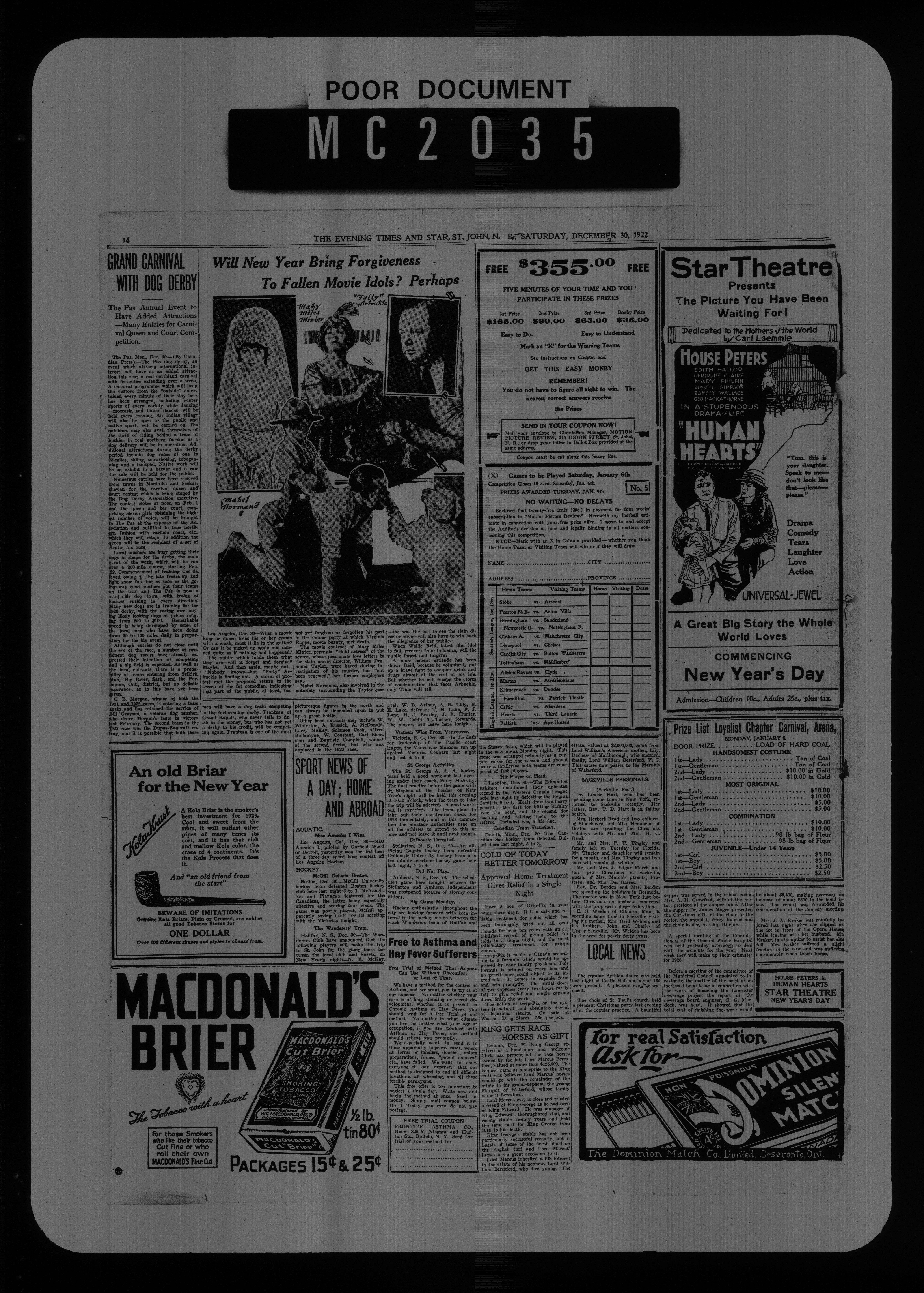 The Evening times star : Vol. XIX, No. 76 (December 30, 1922)