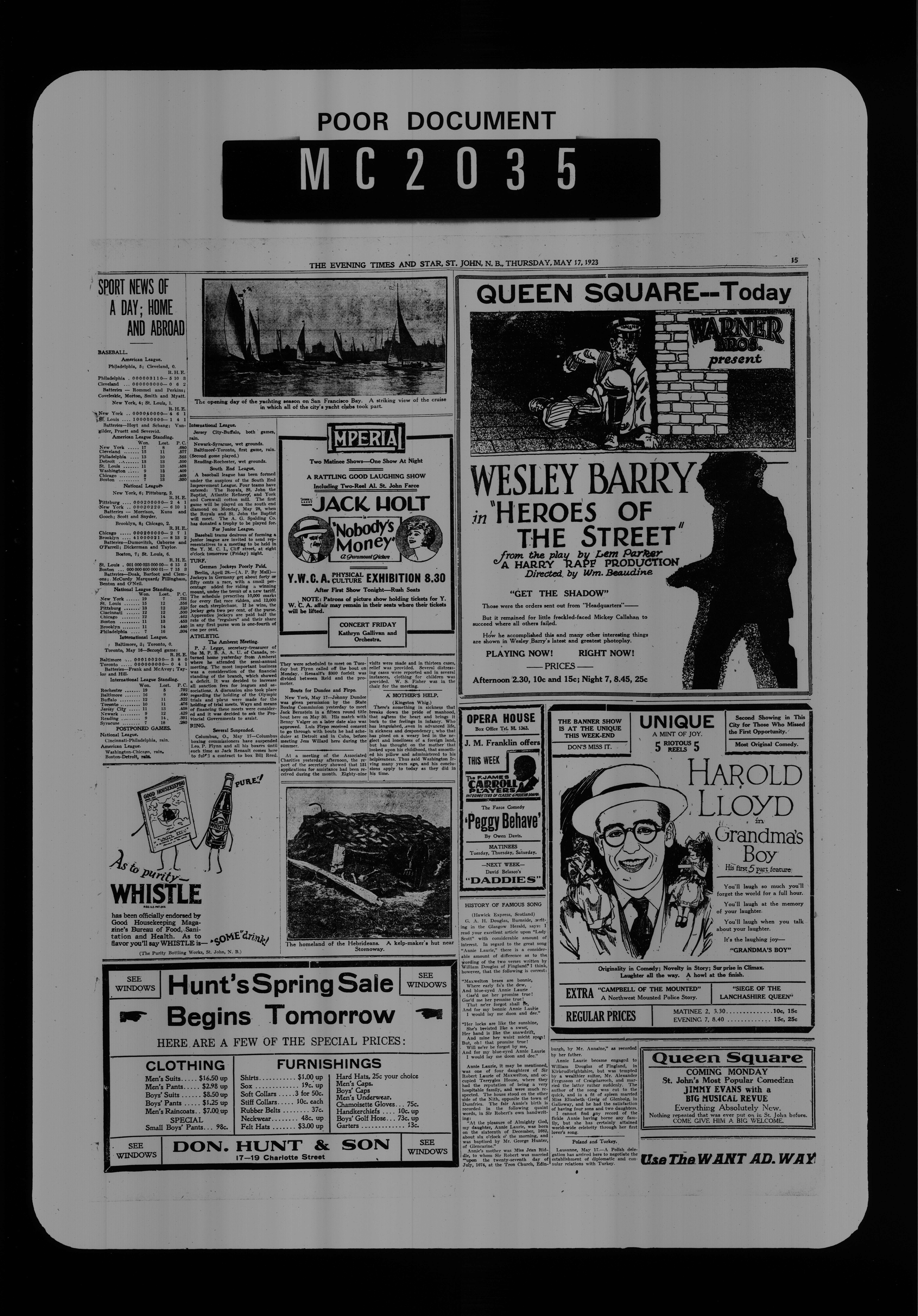 The Evening times star : Vol. XIX, No. 192 (May 17, 1923)