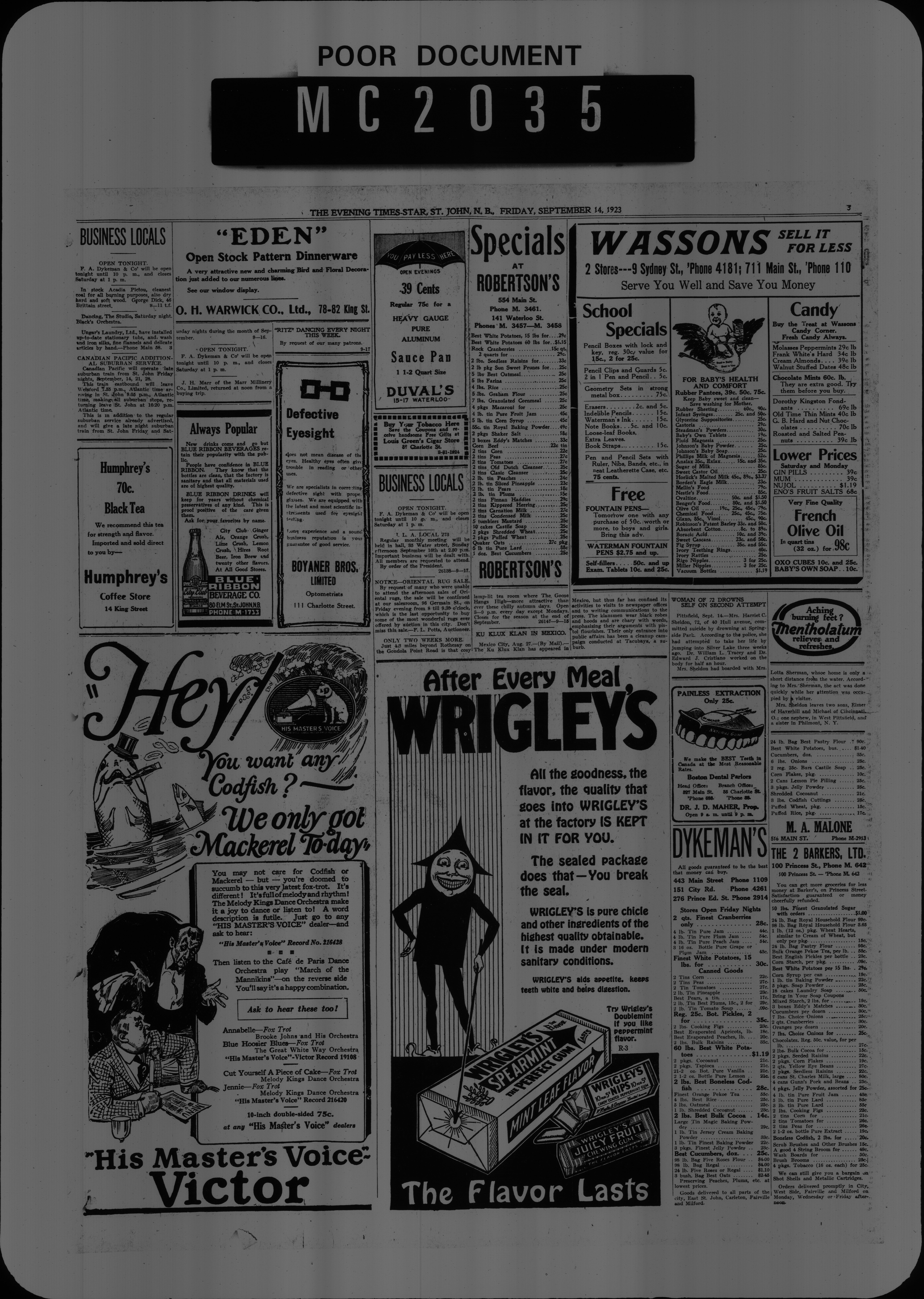 The Evening times star : Vol. XIX, No. 291 (September 14, 1923)