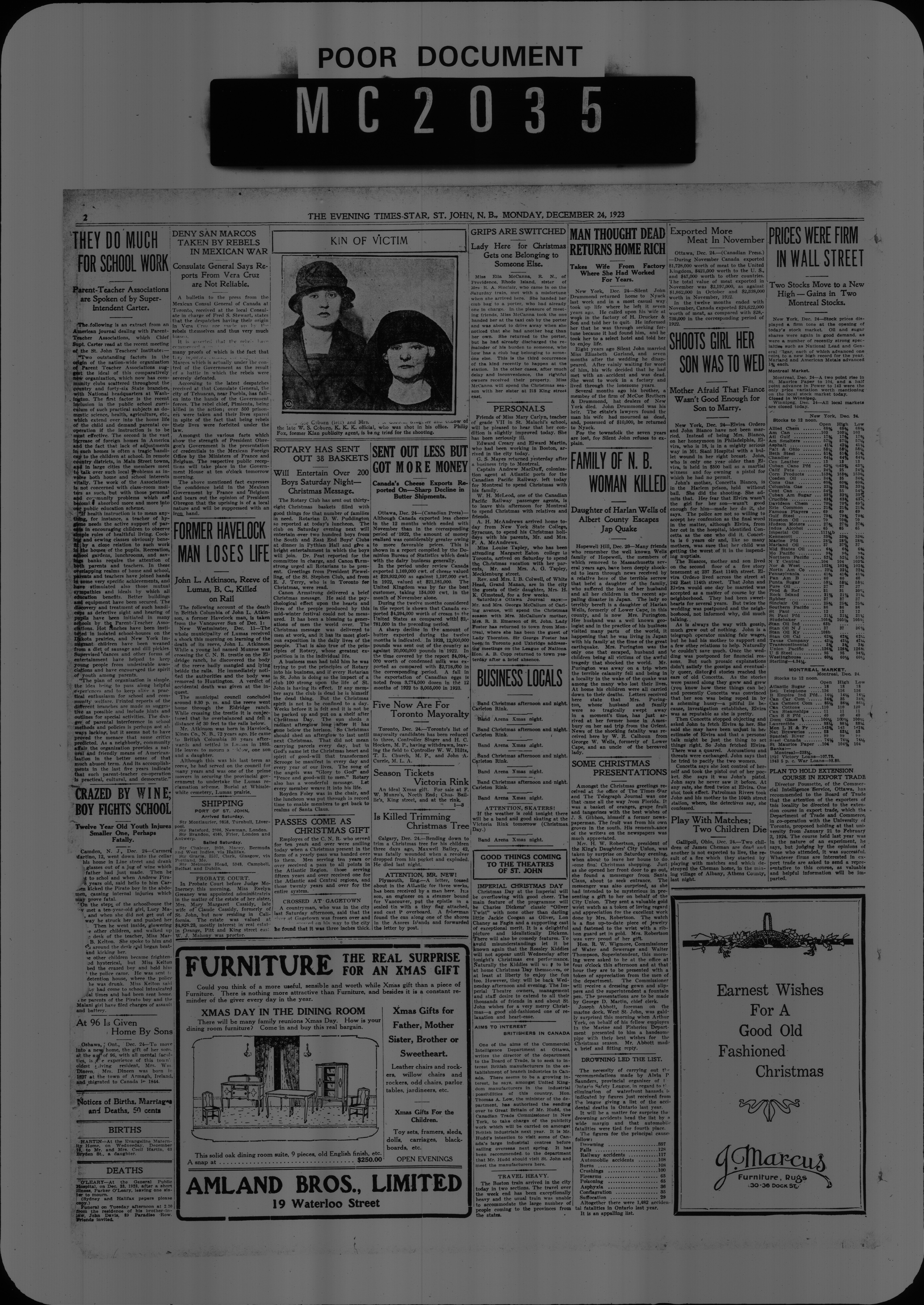 The Evening times star : Vol. XX, No. 72 (December 24, 1923)