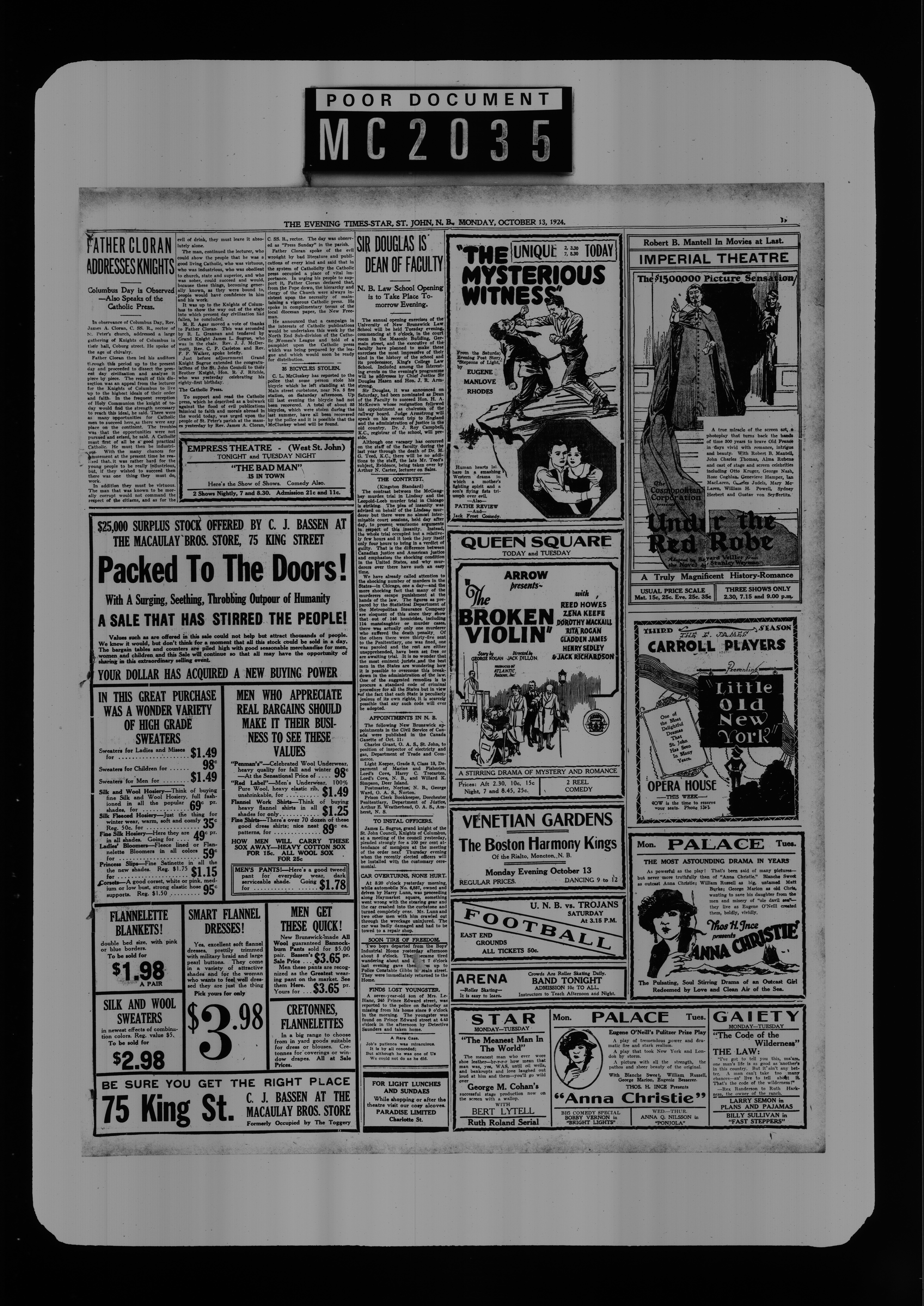 The Evening times star : Vol. XXI, No. 11 (October 13, 1924)