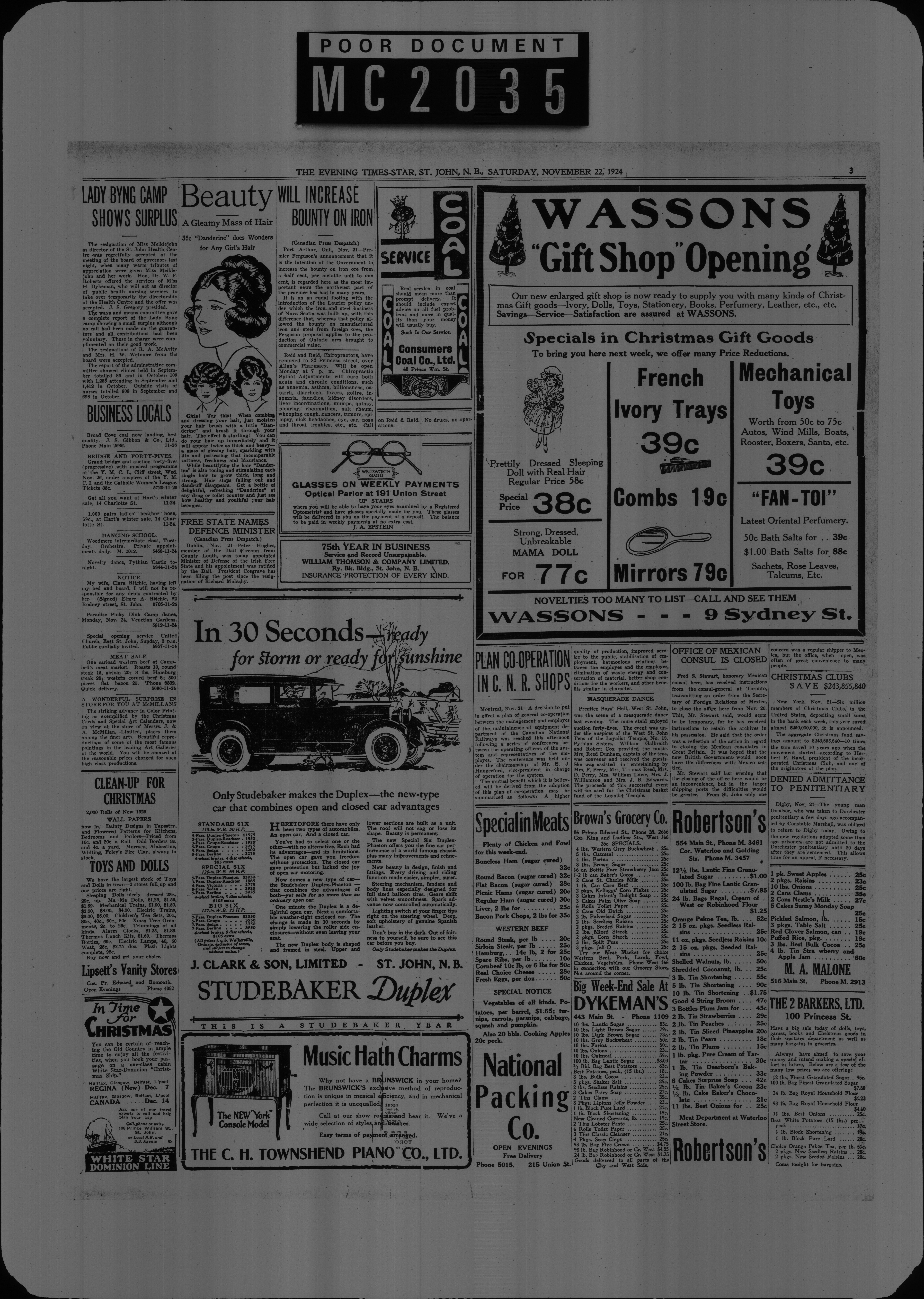 The Evening times star : Vol. XXI, No. 46 (November 22, 1924)