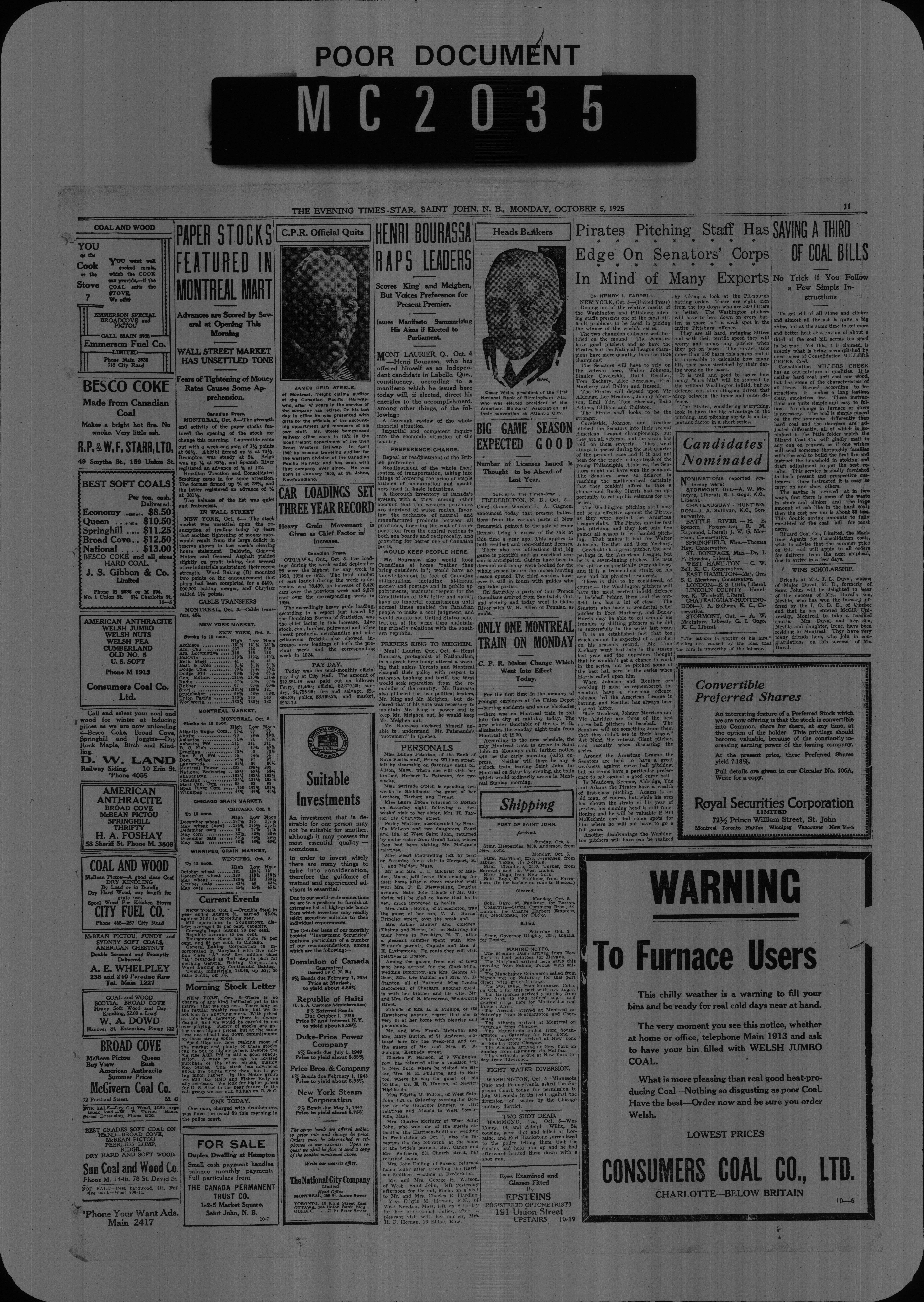 The Evening times star : Vol. XXII, No. 4 (October 5, 1925)