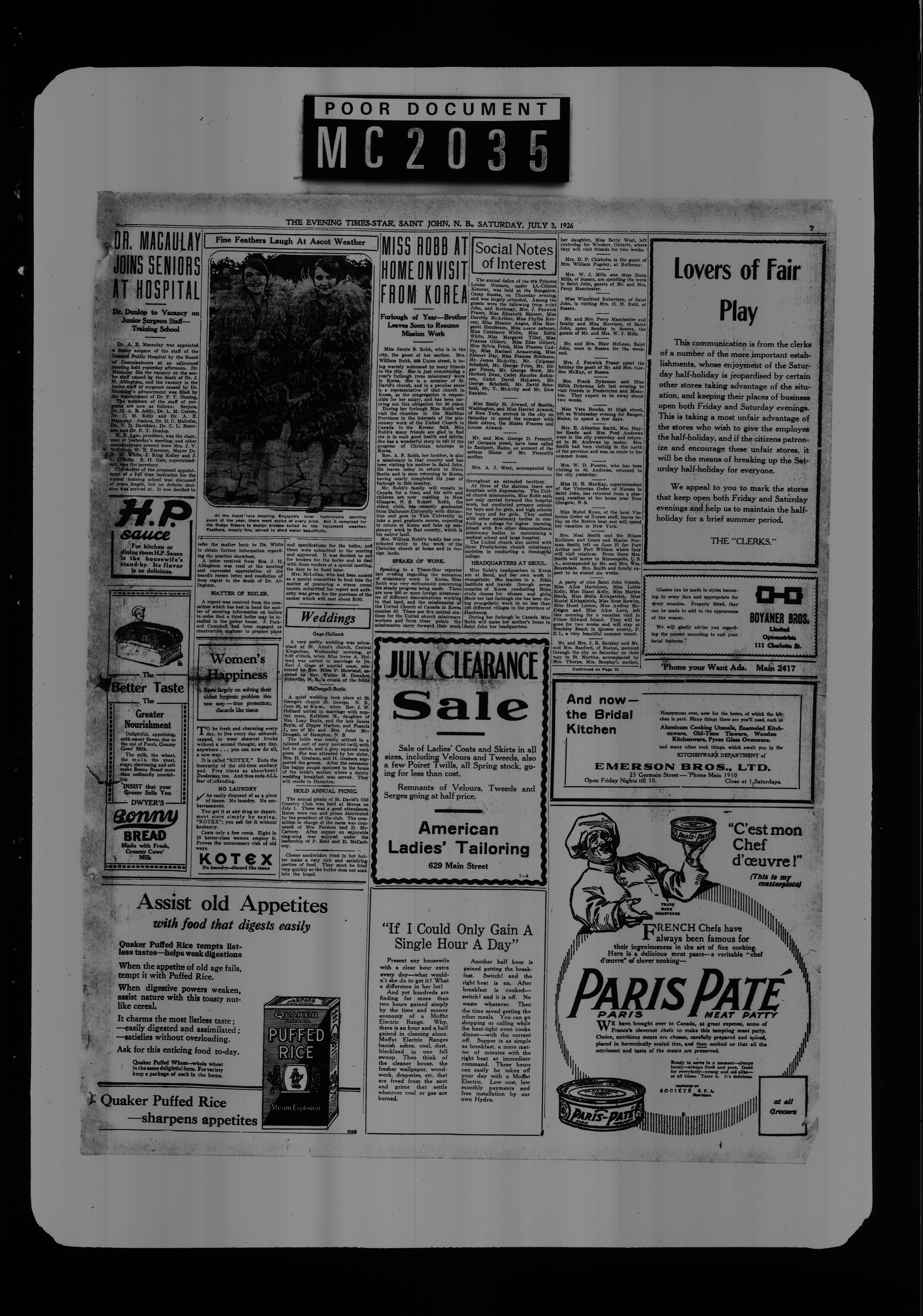 The Evening times star : Vol. XXII, No. 230 (July 3, 1926)