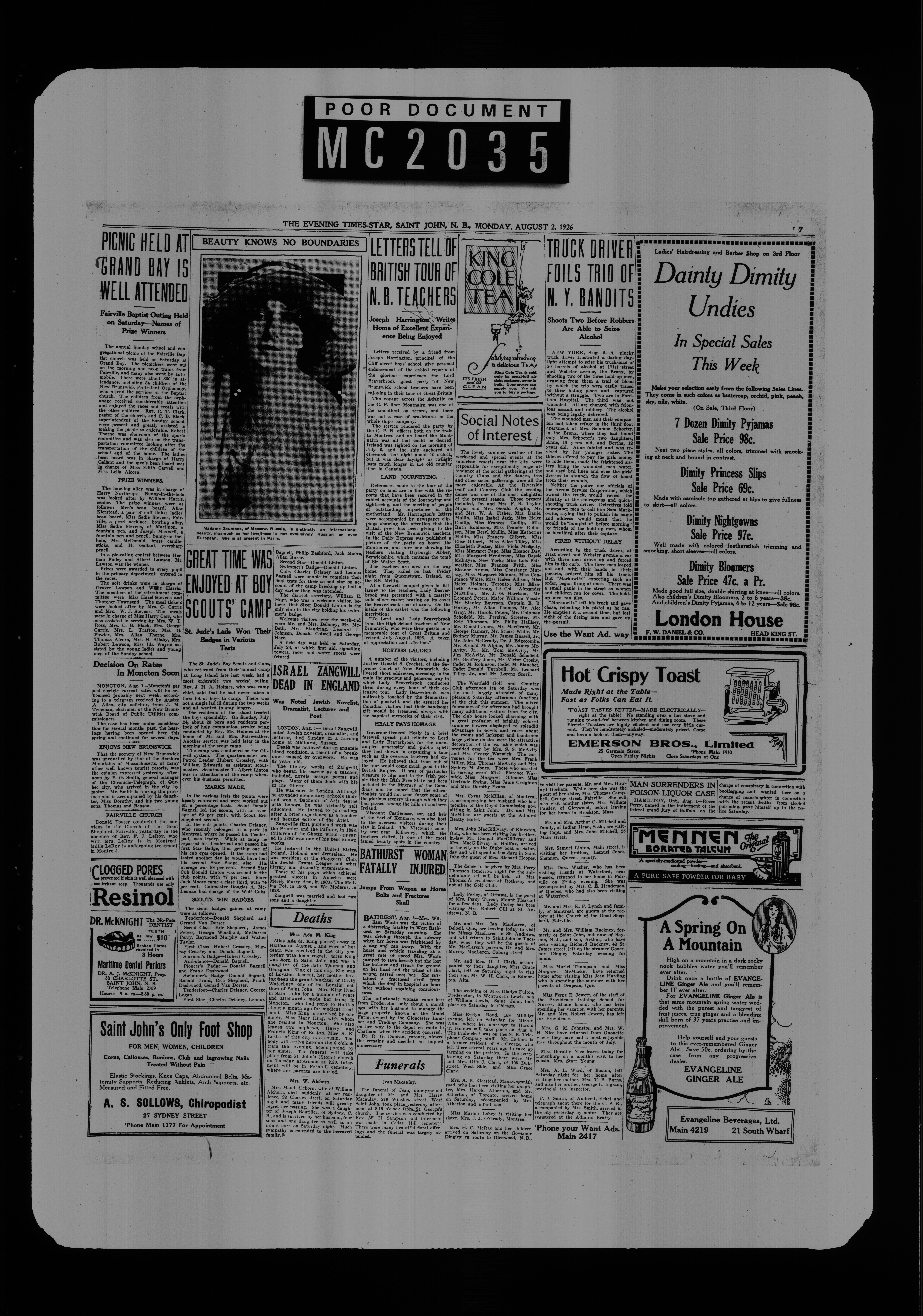 The Evening times star : Vol. XXII, No. 255 (August 2, 1926)