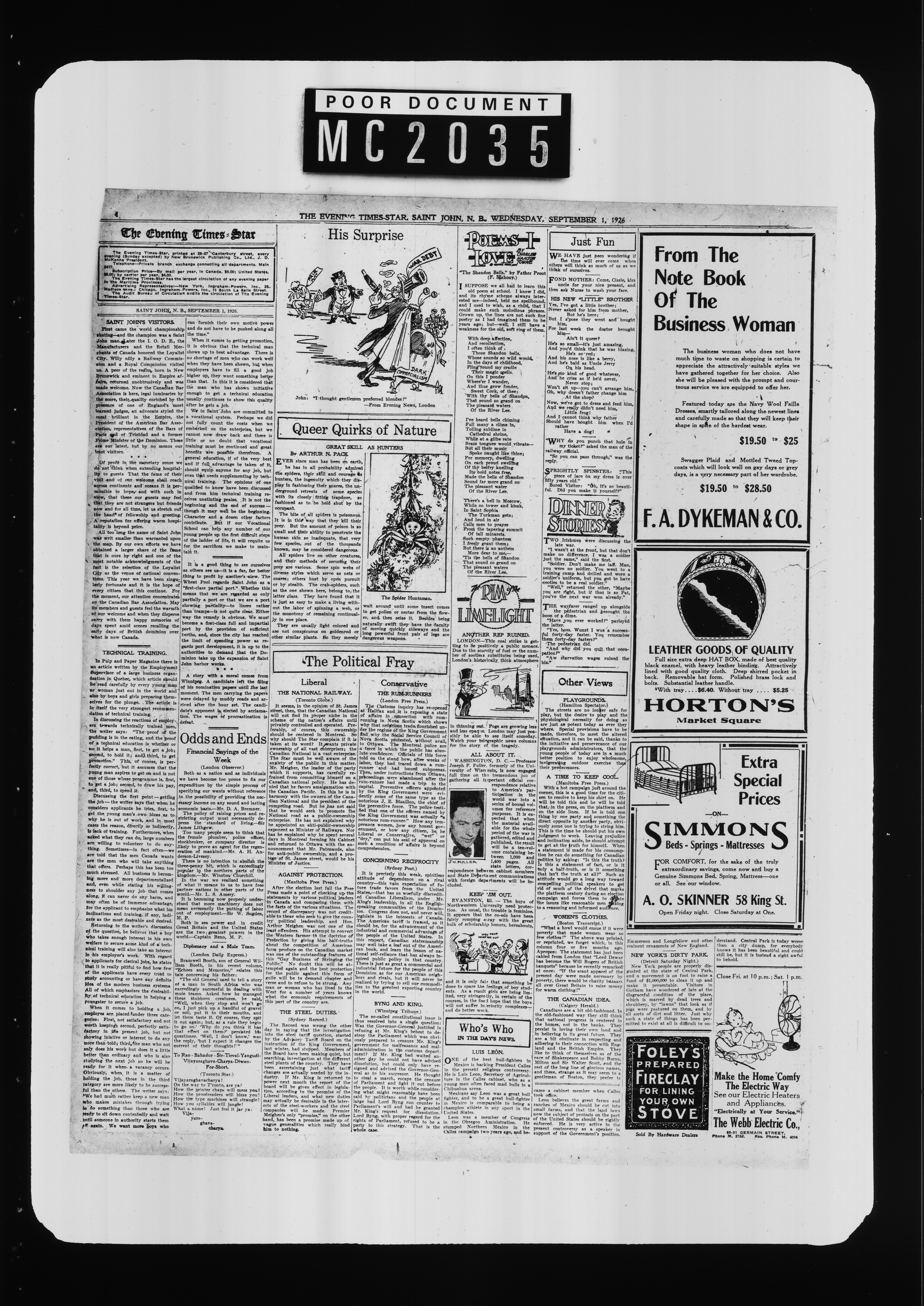 The Evening times star : Vol. XXII, No. 281 (September 1, 1926)