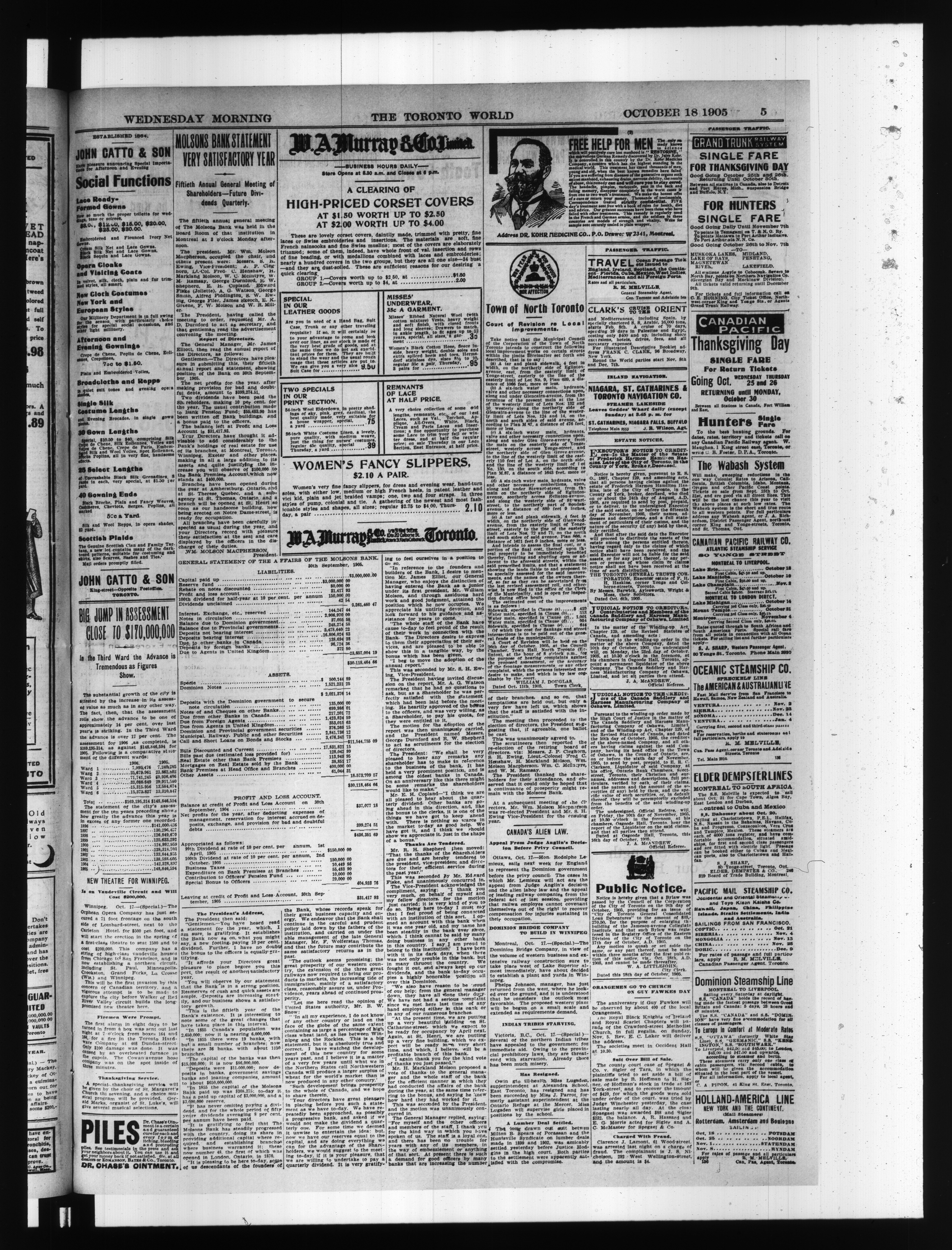 The Toronto world : Twenty-Sixth Year (October 18, 1905)
