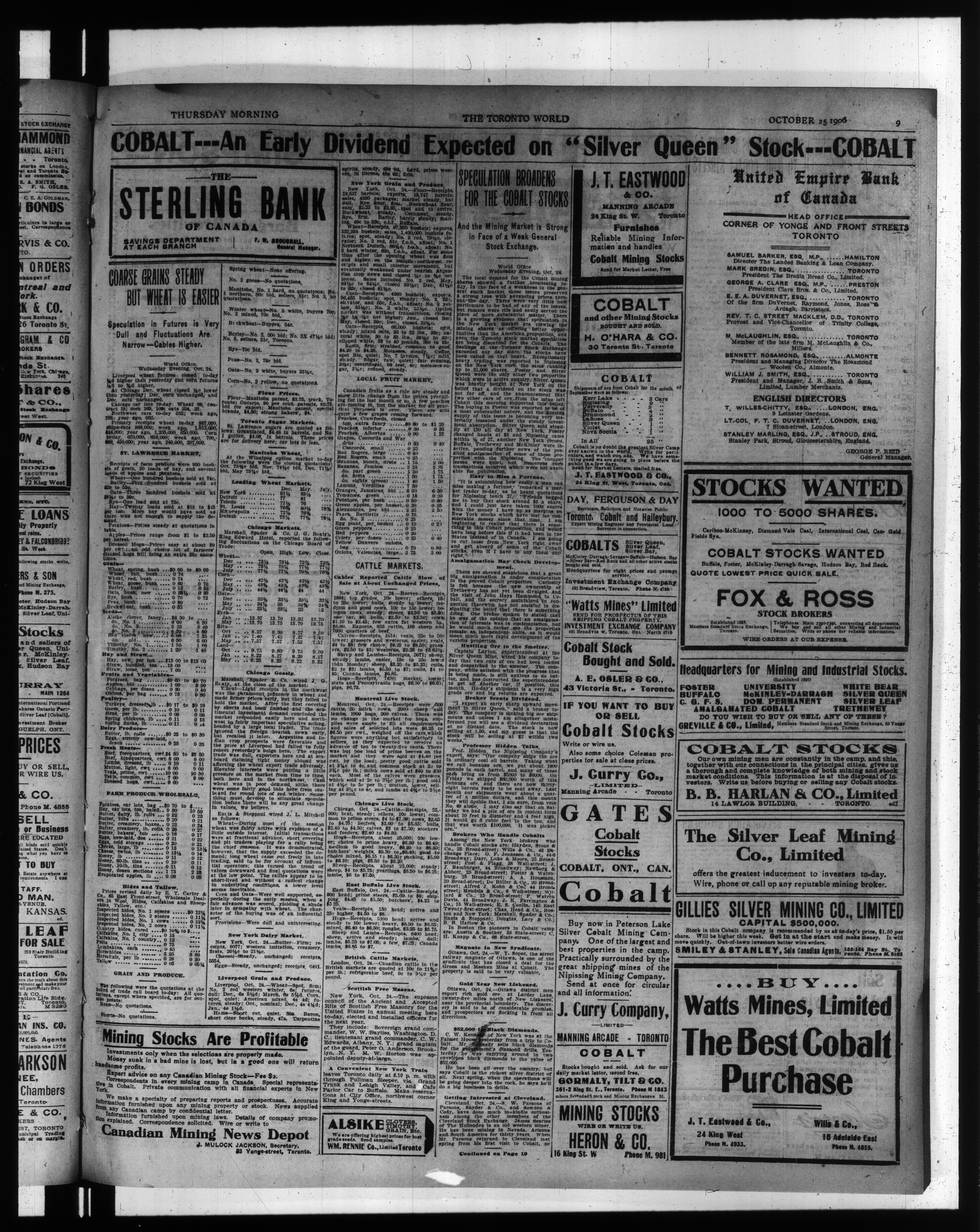 The Toronto world : Twenty-Seventh Year (October 25, 1906)