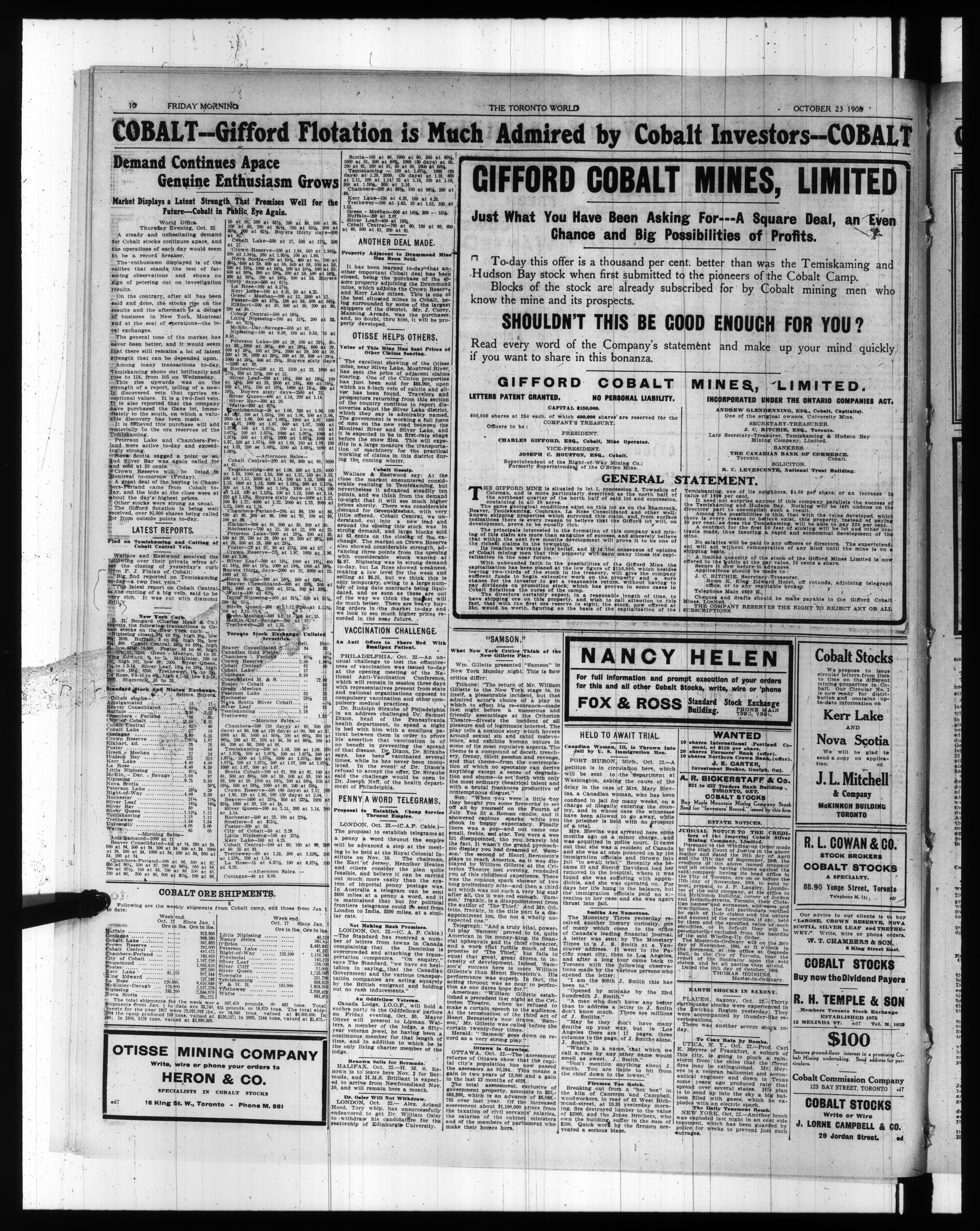 The Toronto world : 28th Year (October 23, 1908)