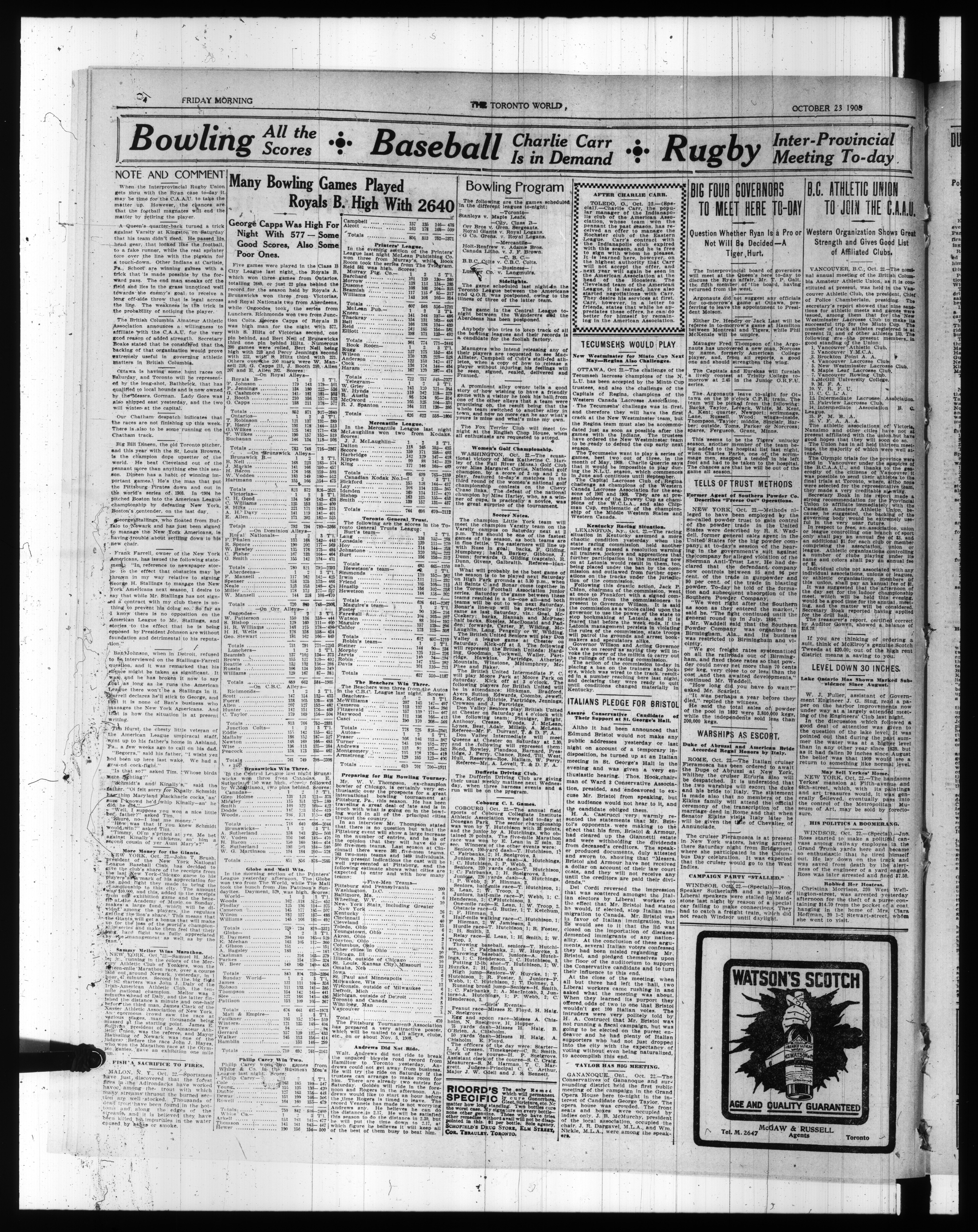 The Toronto world : 28th Year (October 23, 1908)