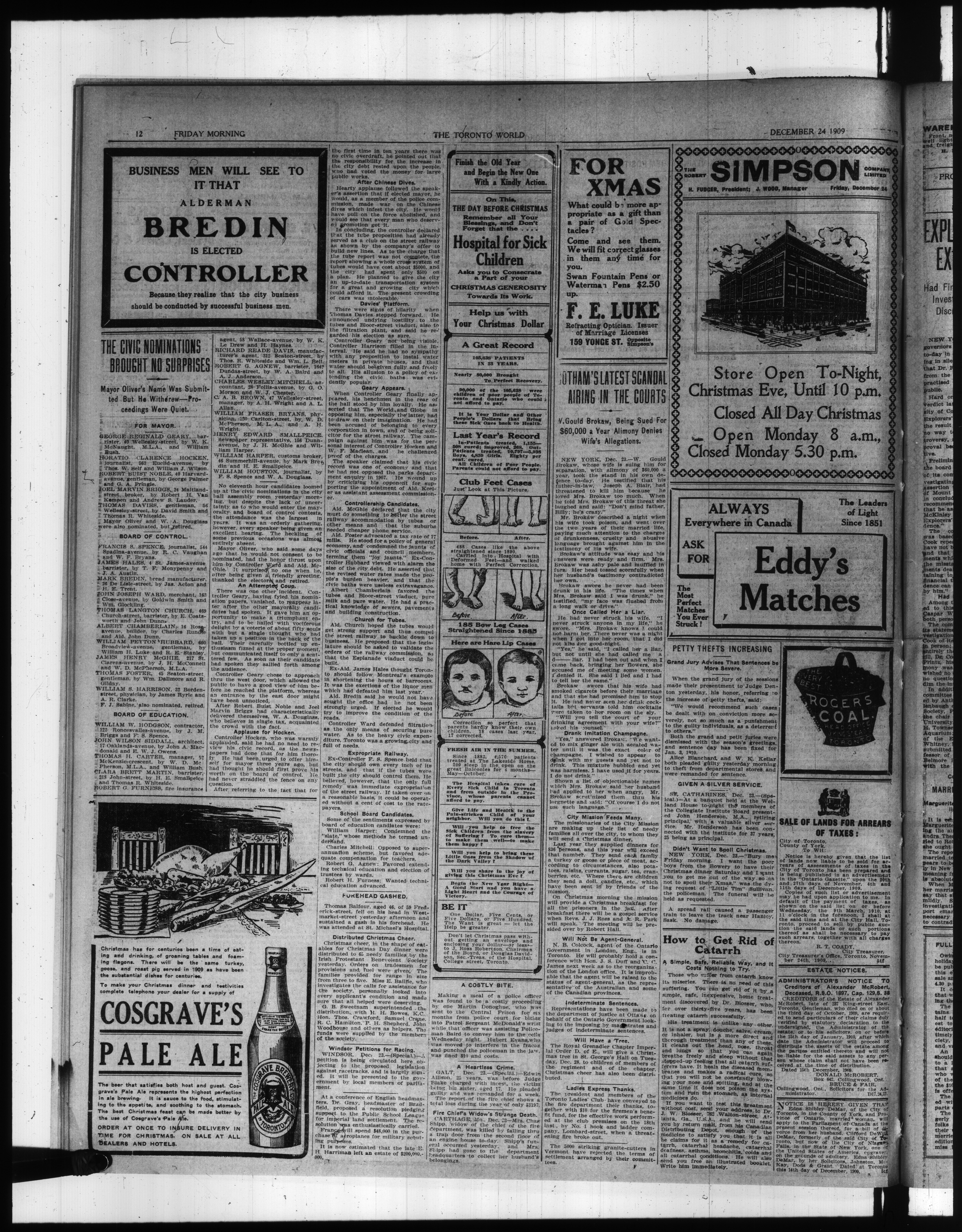 The Toronto world : 29th Year (December 24, 1909)