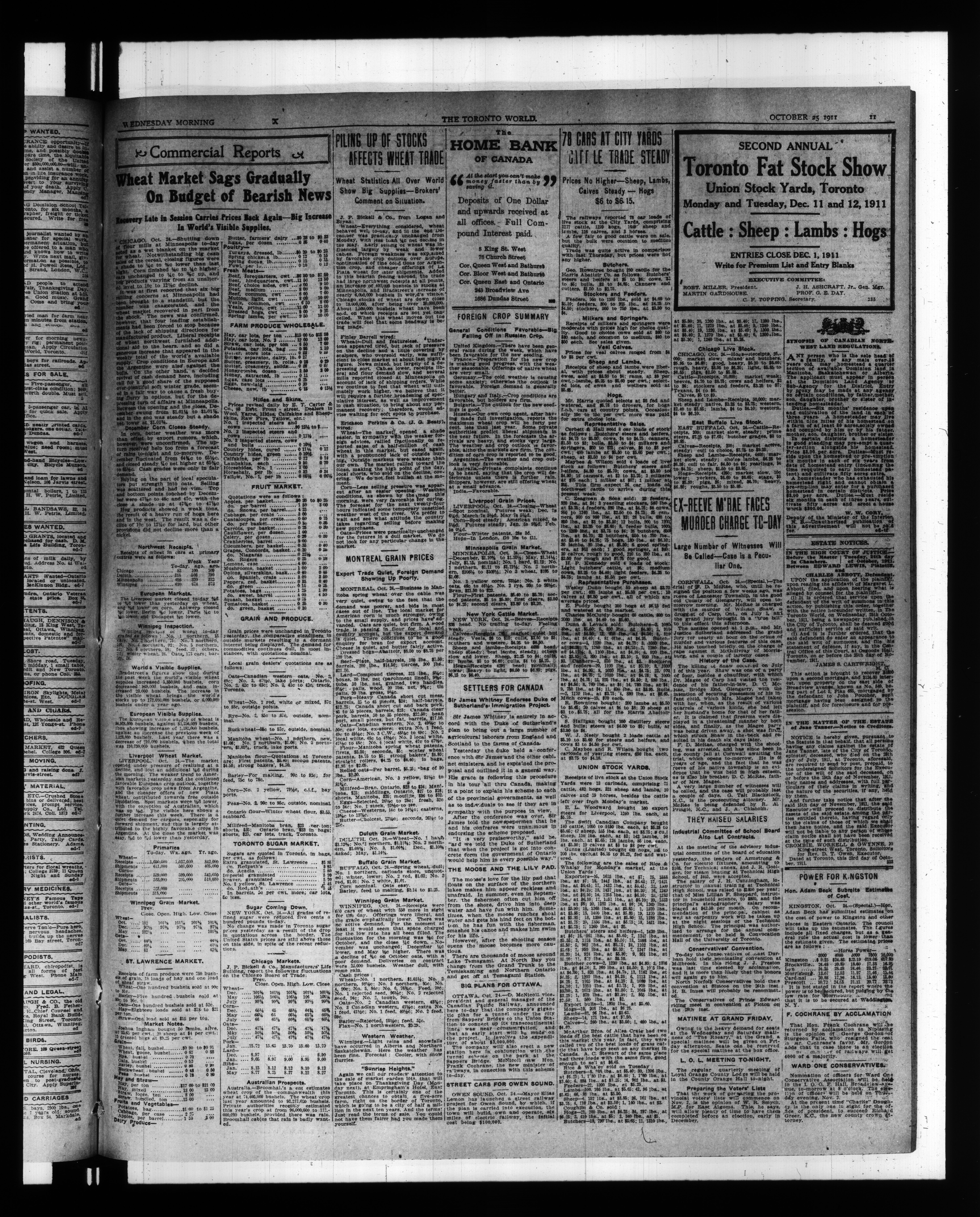 The Toronto world : Vol. XXXI, No. 11,374 (October 25, 1911)